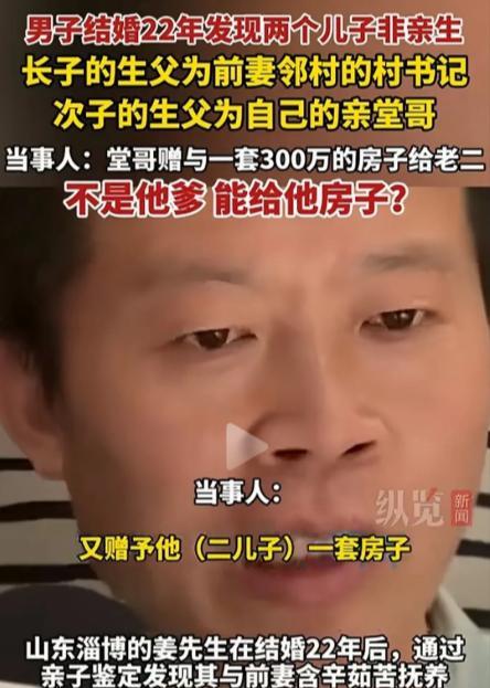 淄博两儿非亲生二审维持原判,大儿子还在蹦哒反咬养他的人,因为他没路了,村支书似乎不缺儿子,也与她母亲闹翻,他想保住财产死咬不承认也无济于事。 “你不是我父亲,你就是个窝囊 废!” 山东淄博街头,姜先生被大儿子一拳撂倒时,听到这句扎心的话,整个人如遭雷击。谁能想到,这句伤人的怒吼,竟撕开了一段隐瞒 22 年的荒诞真相,让一场关于亲情、背叛与欺骗的闹剧彻底曝光! 姜先生是个实心眼的汉子,结婚时,一心扑在家庭上。他以为日子虽平淡,却满是踏实,再苦再累也值得。离婚时,他干脆利落地选择净身出户:一套房给前妻,一套房给大儿子,存款留给小儿子。在他眼里,血浓于水,孩子都是自己的骨血,多给点没毛病,日子往前看,总能越过越好。 可他万万没想到,大儿子后来因为索要钱财不成,对他动了手,那句 “窝囊 废” 更是像把刀,直直捅进他心窝。也就是这一刻,姜先生心里隐隐约约感到不对劲。他咬咬牙,去做了亲子鉴定,结果简直晴天霹雳:两个儿子,没一个是自己亲生的! 更荒唐的还在后头。随着事情发酵,村里人的议论、爆料,像潮水般涌来。原来,大儿子的生父,竟是前妻邻村的村支书。小儿子的生父,居然是姜先生的亲堂哥! 事情闹到这一步,大儿子不仅不认错,反而跳出来 “反咬”。他一口咬定姜先生是被 “新娶的小媳妇蛊惑”,伪造证据,目的是霸占房产和 40 万结婚钱。可明眼人都看得明白,这不过是垂死挣扎。 村支书家大业大,不缺儿子。小儿子那边,堂哥早年平白无故送套 300 万的房子。村里人私下议论时,都摇头叹气,说这事儿透着一股说不出的荒唐与讽刺。 姜先生被这一连串打击折腾得身心俱疲。他本想着,就算离婚了,孩子还是自己的牵挂,可如今,亲情的根基全被挖空。那些年起早贪黑赚的钱,那些陪孩子成长的日夜,全成了别人的 “嫁衣”。他不是没崩溃过,可日子还得往前,他咬着牙,把这摊烂账拿到了法庭上。 一审宣判后,姜先生确实与两个孩子没有血缘关系,夫妻共同财产重新分割,前妻与两个孩子的生父应当赔偿抚养费等。二审接着折腾,可证据摆在那儿,再怎么蹦跶也没用。二审表示维持原判。 消息一出,网友们炸了锅。 “给别人养了几十年的儿子,真是心寒。支持追回财产!向前妻要赔偿!” “所以说终究还是老实人扛下了所有。可想而知当初母子平安是多么的高兴,可现在发现儿子不是自己亲生的。那种心情是何等的悲凉。” 这场闹剧,让所有人看清了人性的复杂。婚姻里,忠诚是底线;亲情中,真心换真心。别以为谎言能藏一辈子,纸终究包不住火,等到真相曝光的那天,撕破的脸、伤透的心,再也没法愈合。 对于这件事情,你们怎么看?