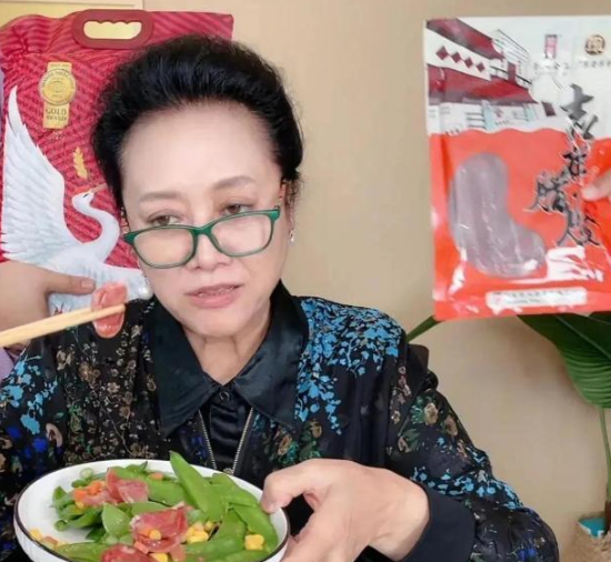 她面前摆放着待售的炒腊肉和冷面,镜头前,这位曾塑造无数经典舞台形象的老艺术家,正努力调动着面部表情。