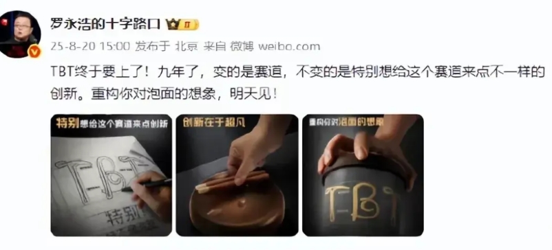 我一直觉得罗永浩呢,一点都不像企业家,更像一个网红,比如这款呢,花费了9年研发出来的一桶方便面~