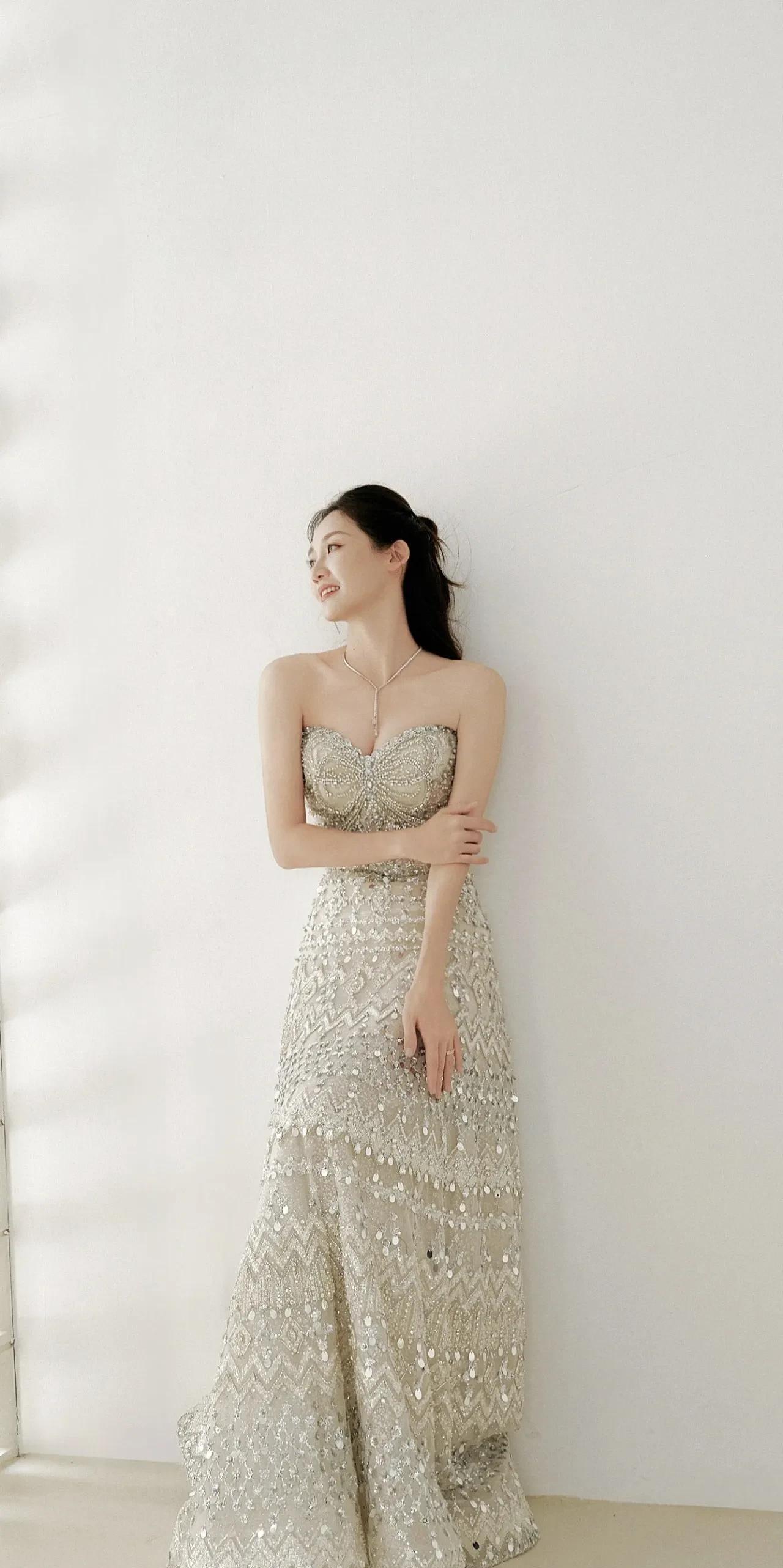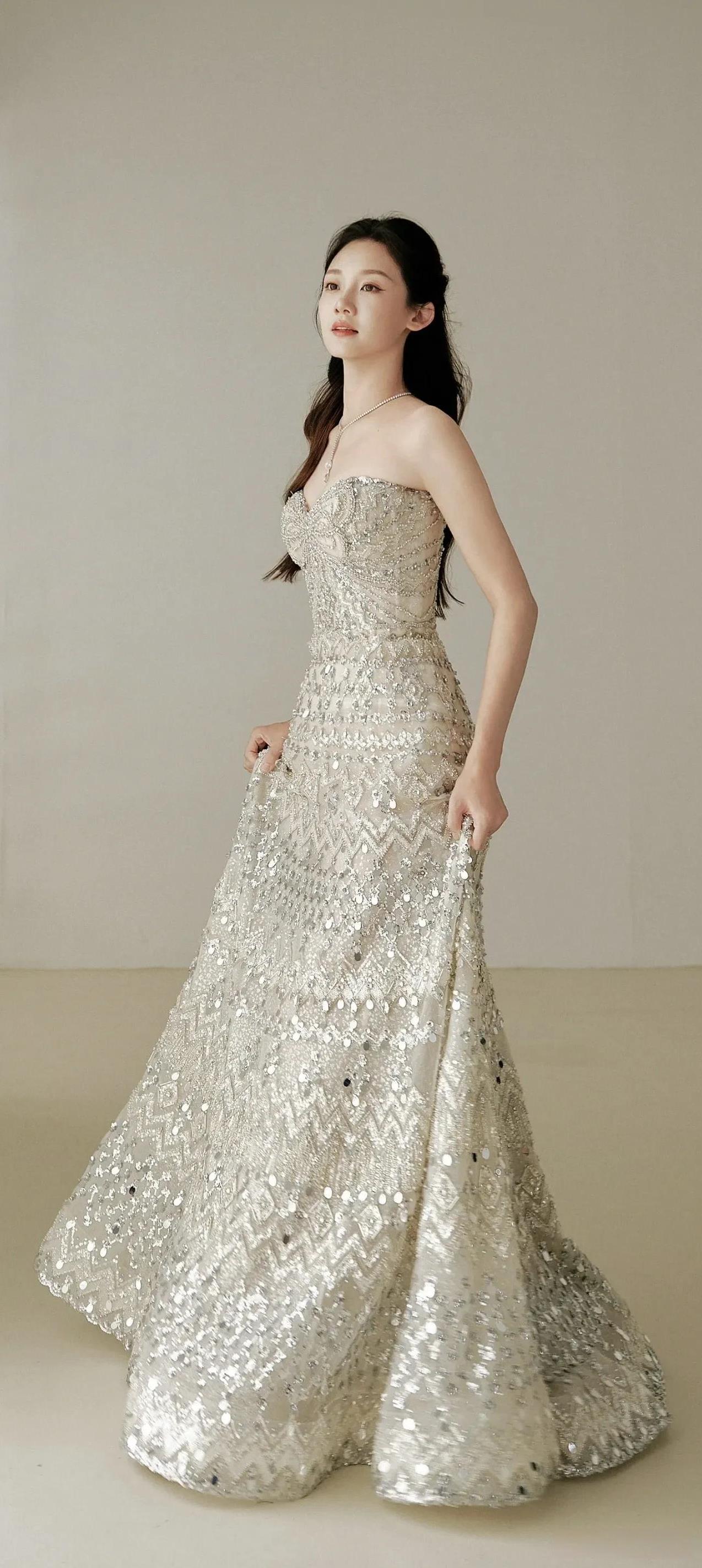 苗苗一袭亮片抹胸裙,曲线凹凸到犯规!皮肤嫩得能掐出水,优雅pose一摆,直接美成