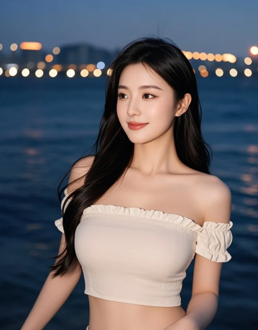 美女侧身回望,轮廓清晰得像被月光一笔勾勒!