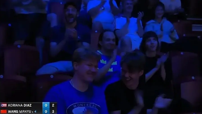当王曼昱和迪亚兹打出27板回合的时候,全场爆发出热烈的欢呼声和掌声!