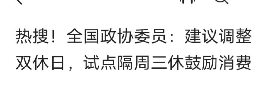 人比人真的气死人,在大多数老百姓连双休都没享受过的情况下,就有某些专家打着促进消费的旗帜为自己谋福利了。 魏代表建议:每周单休,月末连休5天。 理由是每个月都能保底连休5天,碰到节假日,最多时可连休10天。 熊委员则建议:调整双休日试点隔周休三,即一周休一天,下一周休三天。 这些专家说连休五天或三天可以去旅旅游陪陪家人刺激经济促进消费。