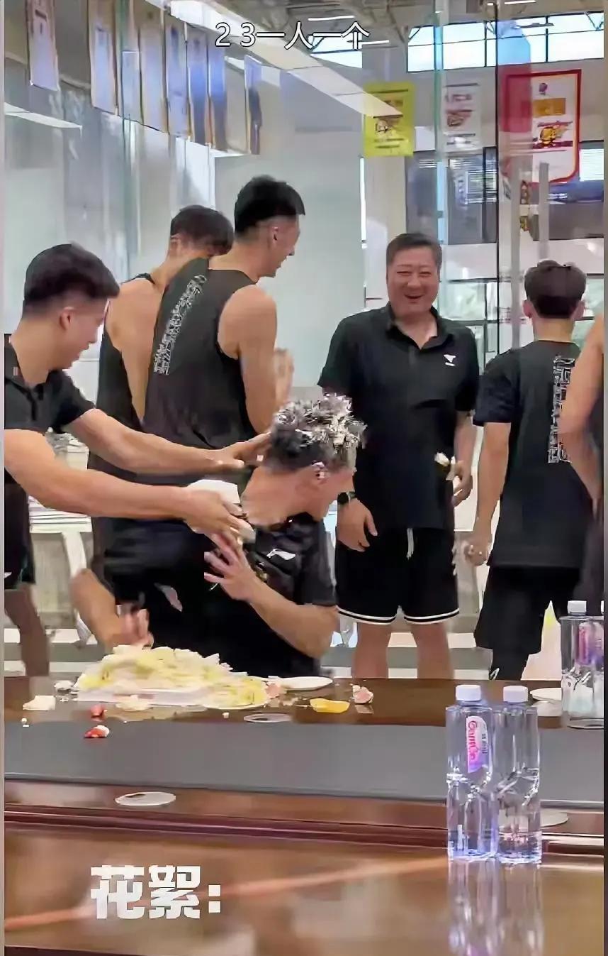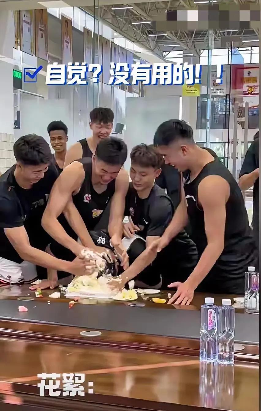 广东宏远的高炮台+神射手杜润旺,8月21日过生日!广东男篮在官方社媒上,晒出了球队为杜润旺庆祝26岁生日的视频并配文:“杜润旺生日快乐!穿搭基础,发型就不基础。” 此消息一出,立刻引发了球迷的热议!众所周知,广东宏远给球员庆祝生日由来已久,且喜欢在社媒上发视频! 此番广东宏远给杜润旺过生日,现场的气氛很温馨,可谓别开生面,让人眼前一亮!只见张文逸、王少杰和徐杰,这哥仨是真不含糊! 杜锋一声令下,众弟子心领神会,一波操作之后,杜润旺变成了蛋糕人,这也预示着杜润旺的未来会步步登高。