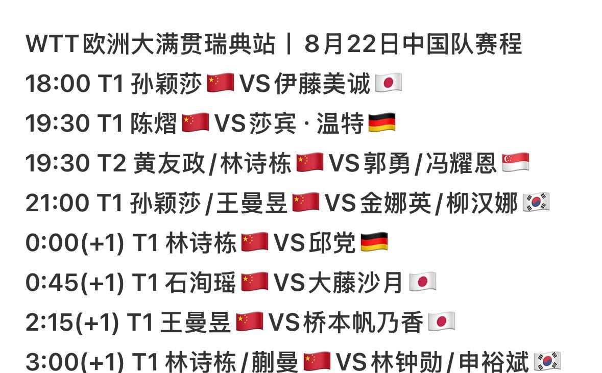 央视体育:伊藤美成说被孙颖莎打的发了疯 WTT瑞典大满贯女单1/4决赛 8月22