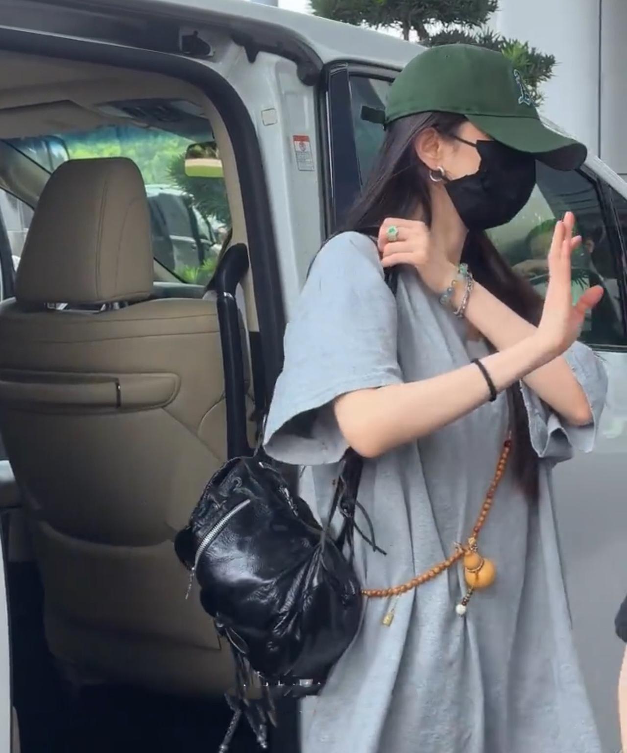 杨幂时尚感从不缺,随便一穿都时髦。杨幂8月22日机场穿搭,睡衣的灰色T恤,宽宽大大的十分松垮,一般人穿上就是居家风,杨幂搭配了不规则的裙子,露出侧大长腿的时髦有个性。
