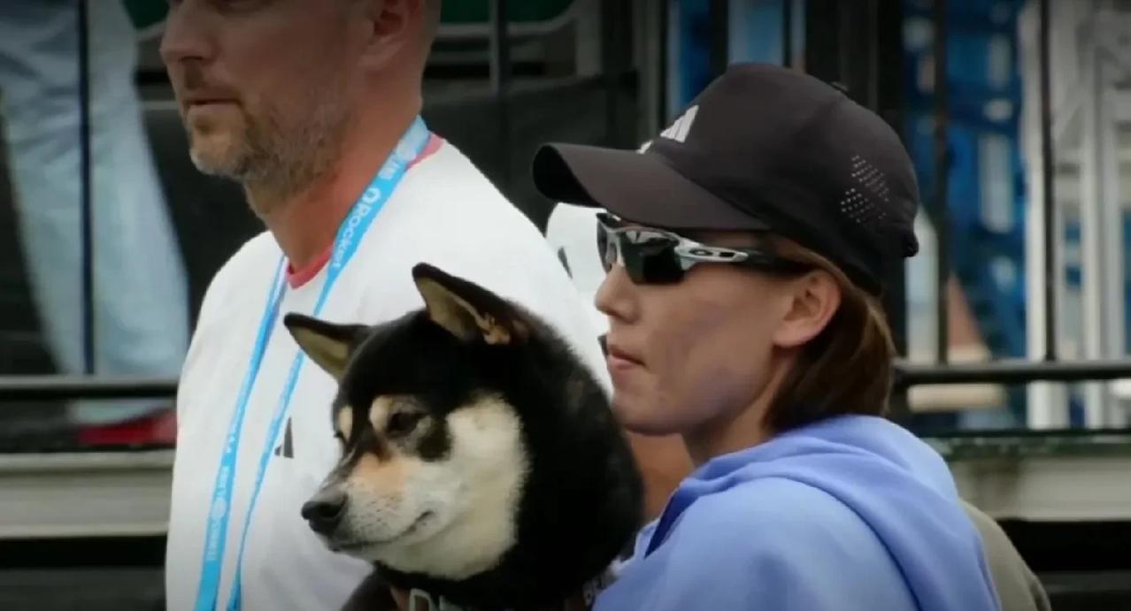 奇闻,郑赛赛抱了一只猎犬在比赛现场! 王欣瑜和澳大利亚选手的决胜盘因为赛场下雨,