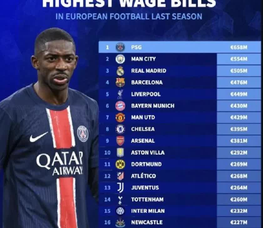 没想到大巴黎的球队薪资才是最恐怖的!这还是送走了梅西,姆巴佩和内马尔的情况下的工资表…… 不过这个工资表还是比前几年健康多了,之前梅西,姆巴佩和内马尔三人加起来的工资估计都赶上巴黎小半只球队的工资了。 不过我还是想问这第二张图巴黎工资全球第一的真实性真的可靠吗?单单一线队的球员不可能有这么高的工资吧?会不会这是这是包括了梯队和所有工作人员的工资? 不过好在今年巴黎拿了欧冠的冠军,之前的所有的付出都是值得的。说白了有钱还是可以为所欲为啊。