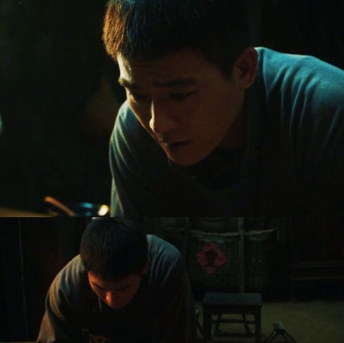 欧豪用最克制的表演释放最汹涌的痛,封大脚的泪珠坠下,身体蜷缩着贴近孩子,轻拍的两下里全是父亲的绝望,无声却极具穿透力。