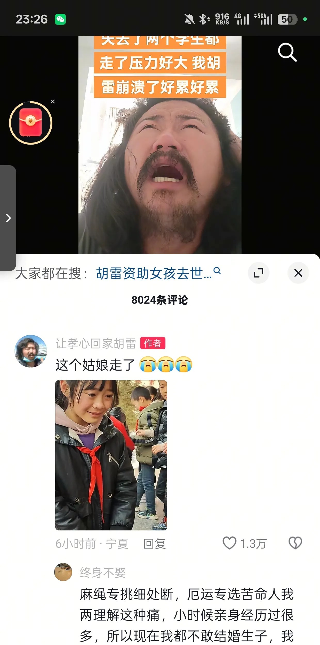胡雷资助的女孩去世! 看到这个消息真的心里抽了一下。 原以为这个女孩会好好长大,后面来感谢胡雷当初的资助,脑海里都是后面女孩长大后和胡雷开心的合照。 却没想到,突然凑不及防,厄运专挑苦命人啊! 看到胡雷那么伤心,看到女孩这小就去世了,令人心痛。