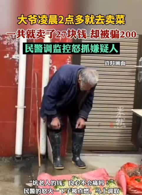 真是坏良心!浙江一78岁大爷凌晨2点多起床,徒步背着菜篮子到市场上卖菜,辛苦一天才只卖27块钱,不料一中年男子见大爷年龄大,竟用200元的假币骗大爷。大爷伤心诉苦:“我就靠这点卖菜钱过日子的”民警:“已抓到人,必须行拘!” 在浙江嘉兴,有个78岁的秦大爷,每天就靠种点菜拿到市场上去卖,生活过得挺不容易。有一天早上,大爷忙活了大半天,才挣了27块钱,结果还被一个中年人用假钱给骗了,真是让人心疼。 那天一大早,天还没亮,秦大爷就起床去地里摘菜,然后背着沉甸甸的菜篮子走到市场去摆摊。大爷没有孩子,就靠卖点菜赚点生活费。过了一会儿,来了个戴着帽子和口罩的男人,买了点大白菜,给了大爷一张100块的钞票。大爷正忙着找钱呢,不小心又掉了一张100块在地上,那个男人“好心”地捡起来给了大爷。大爷心里还挺感激,可他哪知道,就是那会儿,男人偷偷把两张真钱换成了假钱。 到了中午,大爷饿了,想去吃碗面条,结果拿出那两张100块,饭店老板说是假的。大爷一下傻眼了,自己辛苦一上午才赚了27块,结果还被骗了200块。他哆哆嗦嗦地走到派出所,跟警察哭诉说:“我就靠这点卖菜钱活着呢咋就骗我呢?”警察听了都很同情大爷,赶紧开始调查,查了监控找到了那个人,第二天就在杭州把他抓住了。一审问,那个男人姓姚,他承认了自己用假钱骗大爷的事,还把钱退给了大爷。最后,秦大爷的200块钱失而复得,他脸上又露出了笑容。这事儿在网上引起了大家的共鸣,网友们纷纷骂骗子没良心,同时也给快速破案的警察点赞。