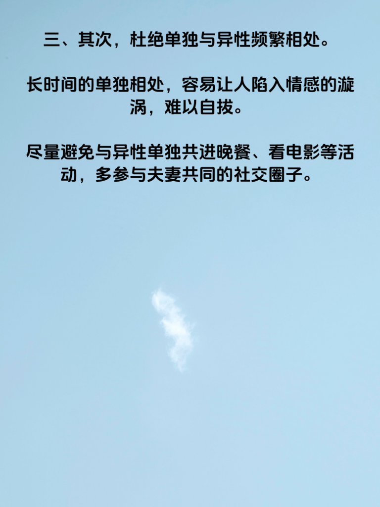 一、婚内出轨,是婚姻中的一颗毒瘤,它不仅会伤害伴侣,还会给家庭带来无法弥补的创伤。所以,一定要避免这4个细节。 二、首先,避免与异性过度亲密接触。无论是言语上的暧昧,还是肢体上的不当举动,都可能引发伴侣的猜疑和不安。保持适当的社交距离,尊重伴侣的感受,是维护婚姻忠诚的基础。 三、其次,杜绝单独与异性频繁相处。长时间的单独相处,容易让人陷入情感的漩涡,难以自拔。尽量避免与异性单独共进晚餐、看电影等活动,多参与夫妻共同的社交圈子。 四、再者,不要对伴侣隐瞒重要事情。坦诚是婚姻的基石,一旦有隐瞒,就容易滋生不信任。无论大事小事,都应与伴侣坦诚交流,让对方感受到你的真诚和尊重。 五、最后,时刻保持对婚姻的敬畏之心。珍惜眼前的感情,用心经营婚姻,不要轻易被外界的诱惑所动摇。只有坚守婚姻的底线,才能拥有幸福美满的家庭。