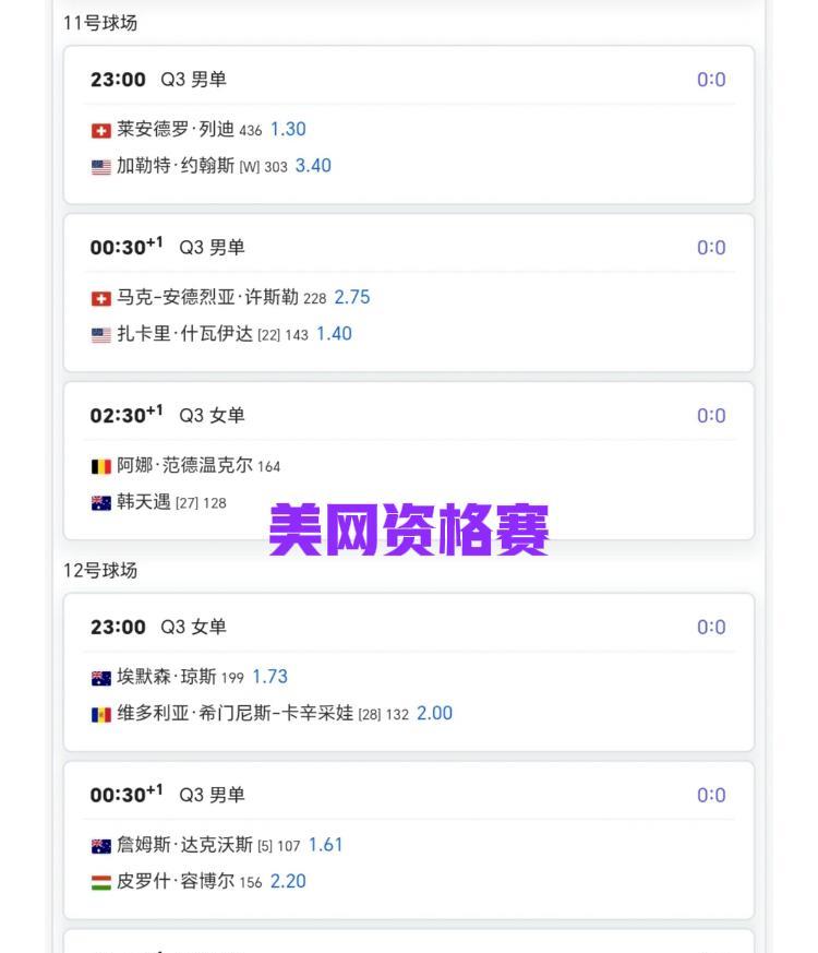 今日网球赛程!! 美网资格赛将上演中国德比,今晚23:00张帅和韦思佳将争夺一个晋级正赛的席位,大家看好谁晋级呢?还有吴易昺、王曦雨、黄泽林也将出战资格赛决胜轮,加油加油!!温斯顿塞勒姆250赛,布云朝克特1/4补赛,克利夫兰250赛,王欣瑜将冲击决赛!!都加油加油!!#网球#