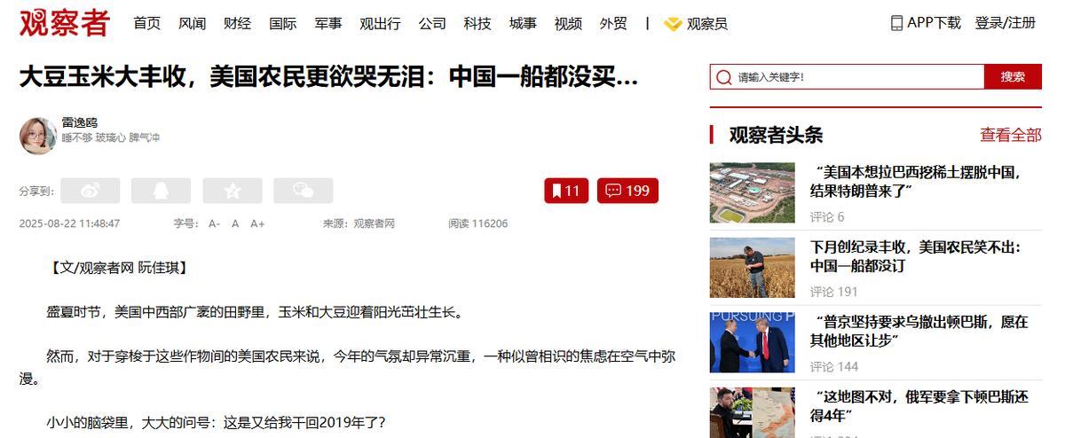 大豆玉米堆成山,美国农民却哭丧着脸直跺脚,中国连一船新货都没要,满仓的粮食卖不出去,这哪是丰收,分明是给自己添堵! 要说原因,还得怪特朗普又跟中国打贸易战,去年他一上台,就把中国这个最大的大豆买家给得罪了。 往年这时候,中国早买了不少美国大豆,今年倒好,一船新货的订单都没有,你说农民能不急吗? 更糟的是,今年收成还特别好,除了少数几个州,大部分地方的玉米、大豆产量都比去年高,玉米甚至要创历史纪录。 可产量越高,农民心越慌 —— 现在农产品价格已经跌到 2020 年以来的最低,这么多粮食卖不出去,最后只能贱价处理,赔本是板上钉钉的事。 这场景跟 2019 年太像了,当年特朗普第一次跟中国打贸易战,美国农民就惨得不行。 价格跌、卖不出,农业部都慌了,连办了 27 年的作物考察团都停了,还急着给农民发补贴,前后砸了两百多亿美元才勉强稳住。 今年虽然没那么激烈,但焦虑一点没少,农民们心里跟明镜似的,中国市场丢不得,上次贸易战,中国转头去南美洲买大豆,好多客户到现在都没回来。 现在特朗普还在那儿瞎嚷嚷,让中国把订单翻几倍,可人家根本不理他。 要知道,农民种地的成本涨得厉害,化肥、农机都贵了不少,就指着卖粮回本,可现在粮食卖不上价,出口又受阻,这不就是逼着人破产吗? 美国大豆协会的人都急得给特朗普写信,说再这么下去,农民就真站在悬崖边上了,连他的忠实支持者都忍不住反对他的政策。 有人还傻乎乎抱有幻想,说中国早晚得买美国大豆,这话太天真了!中国早就找到替代货源了,南美洲的大豆又不是不能用,凭啥非得买你的? 上次贸易战的伤疤还没好呢,谁还敢轻易回头? 特朗普自己也慌了,在网上喊着让中国多买,可光喊有啥用?人家买不买,看的是实实在在的好处,不是你几句话就能说动的。 农民们看得清楚,再这么折腾下去,今年秋天损失只会更大,搞不好真得破产。 说白了,这都是美国自己作的,放着好好的生意不做,非要打贸易战,最后坑的还是自己家农民。 大丰收本是好事,却因为选错了路变成愁事,这账啊,还得算在那些拍脑袋决策的人身上!