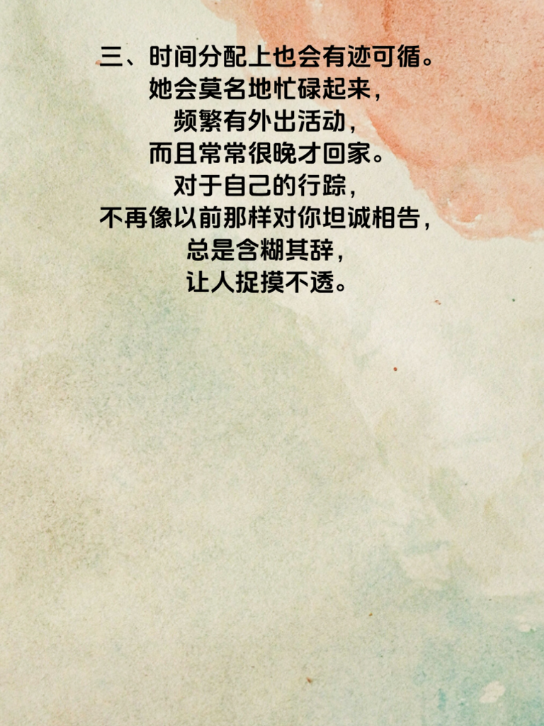 女人出轨前,这些行为透露心迹
