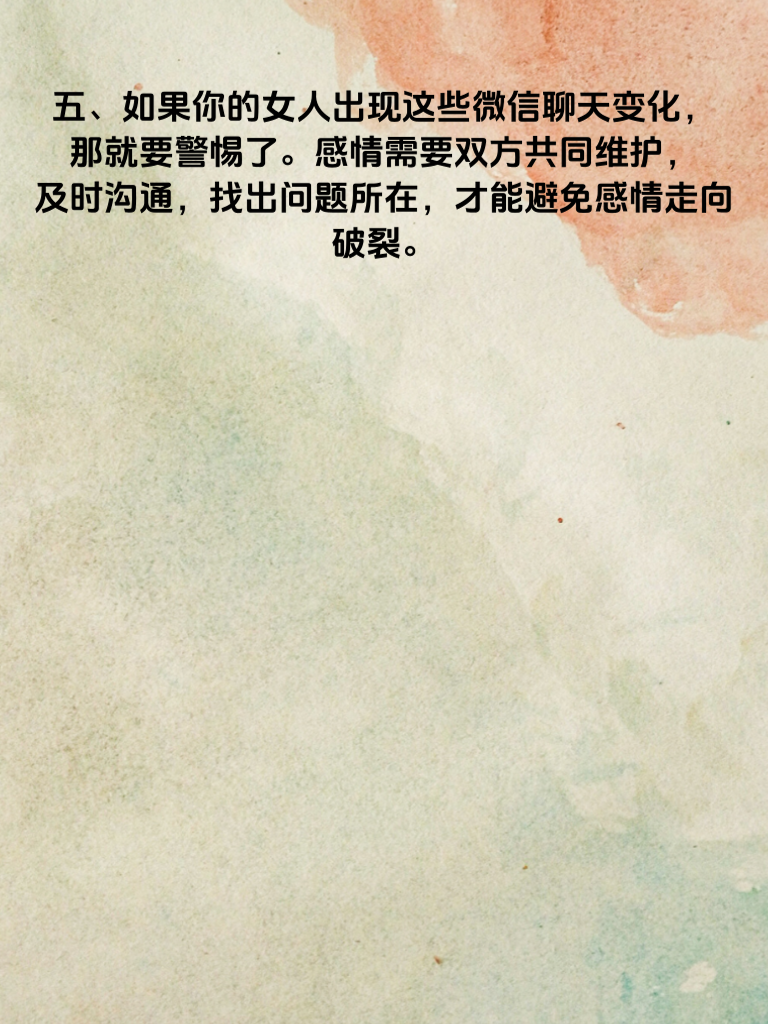 一、女人出轨,微信聊天往往会悄然生变。曾经那个和你无话不谈的她,开始变得有些神秘。回复你的消息不再像以往那样迅速,常常会延迟很久才回,仿佛在刻意回避着什么。 二、聊天内容也有了微妙变化。她不再热衷于和你分享日常琐事,话题变得单一且敷衍。以前那些能聊上半天的兴趣爱好,现在也只是简单应付几句。 三、更明显的是,她开始频繁删除聊天记录。每次聊天结束,都会小心翼翼地清理与某个人的对话。当你偶尔提及此事,她会显得格外紧张,找各种借口掩饰。 四、还有,她在微信上与某个特定对象的互动增多。总是在不经意间提到对方,聊天时脸上也会露出不寻常的笑容。即使你追问,她也会含糊其辞。 五、如果你的女人出现这些微信聊天变化,那就要警惕了。感情需要双方共同维护,及时沟通,找出问题所在,才能避免感情走向破裂。