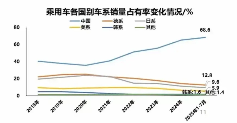 日系车在走向边缘化? 日系车2020年市场份额23.8%, 日系车2021年市场份额21%, 日系车2022年市场份额14.1%, 日系车2023年市场份额13.8%, 日系车2024年市场份额11.2%, 日系车2025年市场份额9.6%, 日系车靠技术垄断优势,躺着赚钱几十年,还傲慢,让消费者加价提车,日系车这样的好日子终于到头了。新能源汽车蓬勃发展,日系车却落伍了,还在推燃油车,日系车跟不上时代潮流,被消费者抛弃,日系车曾经有一款车月卖一万多辆,现在只能卖58辆。日系车在走日本家电老路,彻底走向衰弱,走向边缘化,最终告别这个市场。 铃木汽车告别了这个市场。 三菱汽车告别了这个市场。 大家说说下一个日系车倒下是谁?