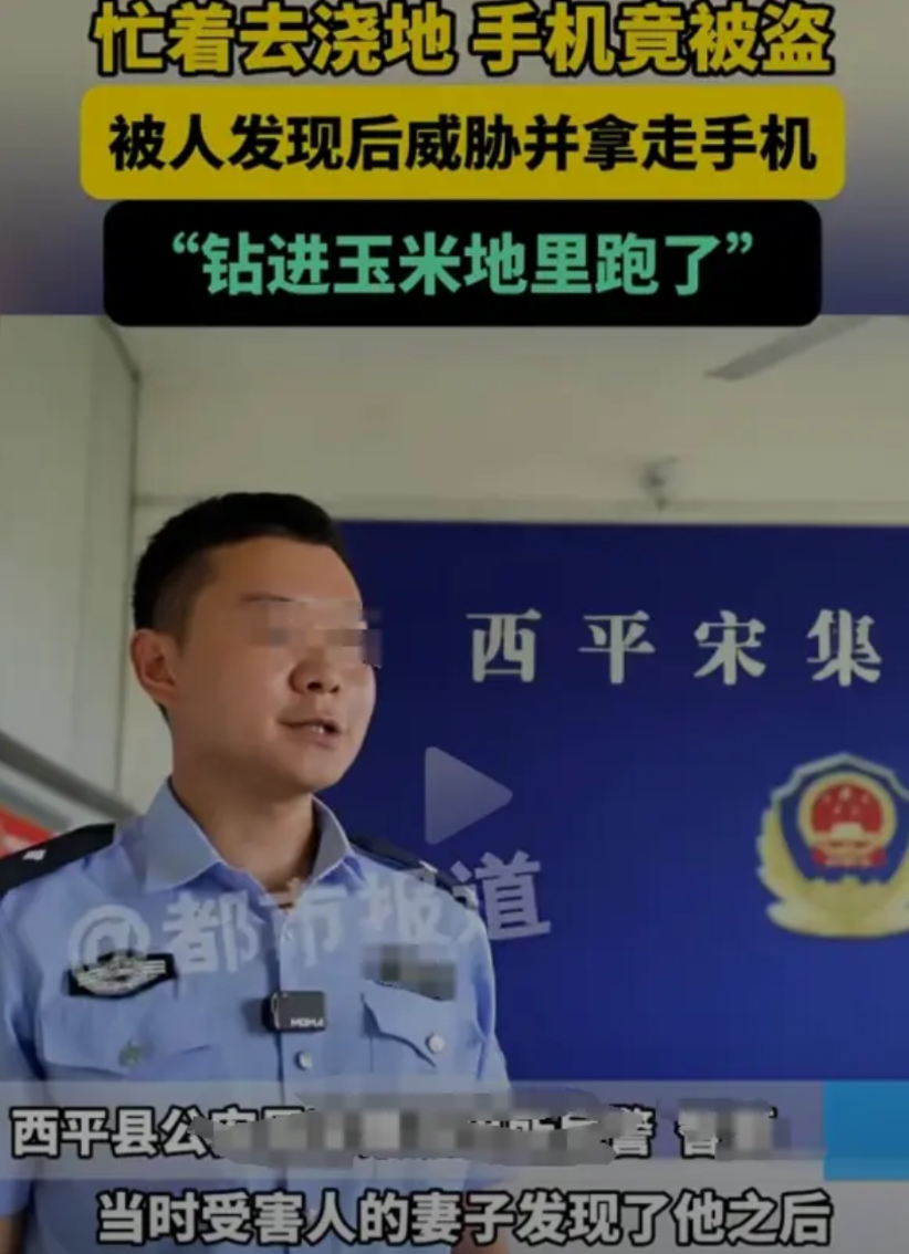 河南,男子姜某骑着电瓶车去浇地,因干活不方便,就随手将手机和钥匙放在电瓶车篓里,一个男子路过时看见手机准备偷走,正在这时,姜某的妻子来了。妻子立即阻止却被男子威胁:再动捅了你!正当姜某妻子害怕之际,男子钻进玉米地一溜烟跑掉了。