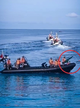 更让菲方“坐立难安”的是,平时“温文尔雅”不会使用热武器,连对付菲方特种兵都只用“自拍杆”的中国海警,似乎在其刚性快艇的艇首架上了重机枪。这对菲律宾人来说,相当于“天塌了”。如果说此前冲突中,被中国海警的“冷兵器”打服,顶多丢个手指。现在的菲律宾人敢来碰瓷的话,就得担心被中国海警用重机枪“突突”了。