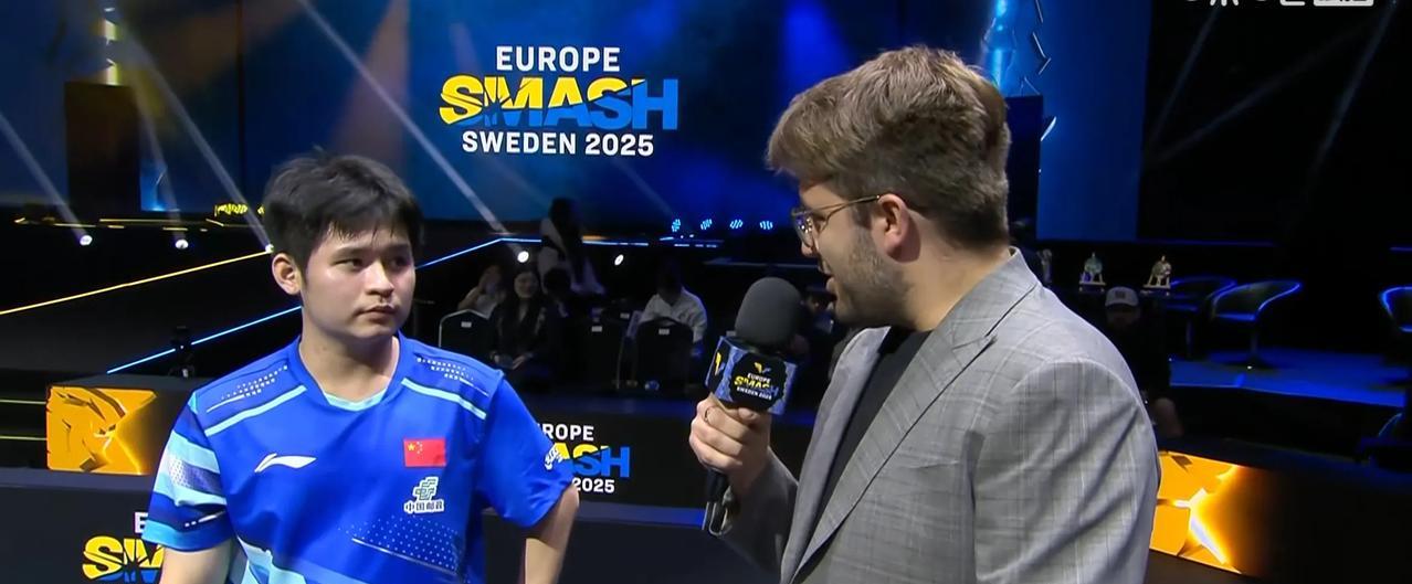 小石头4:0战胜邱党,赛后采访。 记者:恭喜林诗栋晋级半决赛。上次横滨冠军赛你输