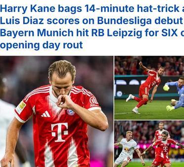 凯恩14分钟内上演帽子戏法!在拜仁6-0击败莱比锡的比赛中,下半场的64分钟开始,到78分钟,短短14分钟之内,英格兰球星凯恩为拜仁连续打入3球,上演了帽子戏法。凯恩的3个进球,展现了一名顶级中锋的顶级射术。