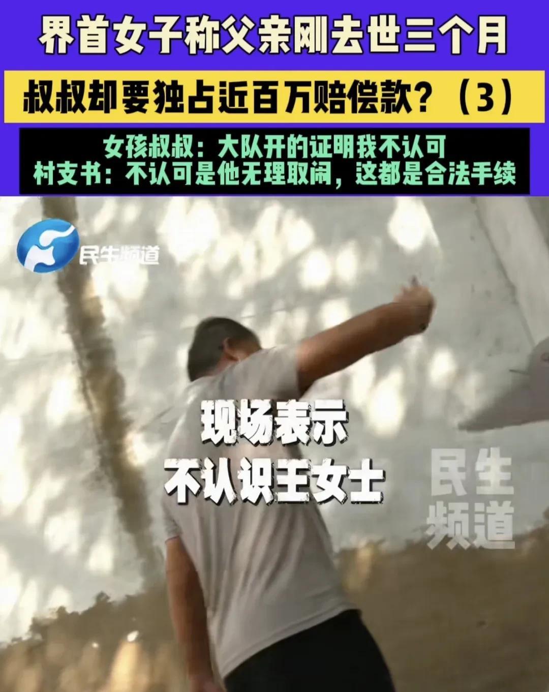 安徽界首,女子继父亲车祸去世3个月,叔叔瞒着她,和对方签下协议,说其父无子女,把近100万赔偿款占为己有,甚至把女子娘家换了锁,叔叔说女子是二婚带来的,与他家没有血缘关系,女子委屈:我从3、4岁就跟俺爸一起生活,村 委也开了证明,就是俺亲爸。 8月23日大参考报道,王女士委屈地说:父亲刚去世3个月,叔叔就开始和俺争家产。 三个月前,王女士的父亲吃完晚饭,出去遛弯却突遭意外,被一辆车撞了,当时人就没了。 父亲出事后,王女士也悲痛万分,和叔叔一起全程张罗父亲的后事,然而,事情快结束的时候,出了纰漏。 叔叔居然瞒着她和肇事方签了协议,还说王女士父亲无子女,就一个人。然后,对方就把丧葬费、赔偿款都打到了叔叔的账户中。 等王女士发现后,想要父亲的赔偿款却被叔叔拒绝了。 更让她没想到的是,叔叔干脆把她父亲家的门锁砸了,换了一把新的锁。 叔叔拒绝王女士的理由是,“你是二婚带来的,跟我们没血缘关系,不是我们家里人。” 原来,王女士三四岁的时候跟着母亲嫁到了父亲家,她口中的父亲其实是她的继父。 但王女士从3岁就一直跟着母亲和继父一起生活,继父对她视如己出,供她读书,上学、生活花销都他出,一直抚养她长大成人。 后来,王女士出嫁了,父亲生病什么的,她都会照顾,她始终将继父当成亲爸,而继父也一样将她当做亲生女儿。 王女士觉得母亲虽然去世的早,但是,她从3岁到30多岁都是在村里长大的,全村人都知道自己和继父是父女关系。 而且,叔叔独占赔偿款后,她也找到村里给自己开了一个证明,证明上明明白白、清清楚楚写着她与继父是父女关系。 王女士找了记者帮忙,一起再次找到叔叔协商此事,结果叔叔情绪激动,拒绝任何沟通。 大家只好来到村里,村 支 书说,王女士确实在村里长大,她出嫁还是她继父送嫁的,她属于第一顺序继承人,这笔赔偿款谁也争不走。 村里也跟王女士的叔叔谈过,王女士就是第一继承人,但是,其叔叔坚持说,我非得到不可。 其实,王女士的叔叔有他自己的想法,他说一开始他也是奔着协商去的,现在闹成这样,钱没一分,房子、地没有我的,说句不好听的,她跟我哥是什么关系?我不承认她是第一继承人。 村里协调双方见面协商,结果,叔叔一家不愿意谈,让王女士走法律程序。 有人说,叔叔独占赔偿款,可能是因为王女士不是哥哥亲生的,如果是亲生的应该就给了,主要是一点血缘关系都没有,这事不好说。 其实,从情感方面这位叔叔的做法和态度,也可以理解,从情感上没办法接受赔偿款给没有血缘关系的王女士,但从法律上继女和亲生子女是有同等继承权的。 1、王女士作为继女有权继承父亲的赔偿款和遗产吗? 《民法典》第1127条规定:遗产按照下列顺序继承:(一)第一顺序:配偶、子女、父母;本编所称子女,包括婚生子女、非婚生子女、养子女和有扶养关系的继子女。 王女士虽是继女,但自3岁起与继父共同生活,继父供她读书、抚养她长大,双方形成了法律上的有事实扶养关系的继父女关系。 根据民法典,她属于第一顺序继承人,与亲生子女享有同等继承权。 父亲的赔偿款,本质是对死者近亲属的经济补偿,王女士作为近亲属,有权主张分配。 叔叔作为第二顺序继承人(兄弟姐妹),在第一顺序继承人存在时无权继承。 法律上的继承权以“扶养关系”为核心,而不是血缘。 继父母子女关系一旦形成,权利义务与亲生关系相同。 所以,叔叔以“无血缘”为由拒绝,是对法律关系的误解。 2、有人问:有没有可能王女士母亲和其继父二婚,没有领结婚证,搭伙过日子? 如果王女士的母亲没有和其继父领结婚证,她还能继承父亲赔偿款吗? 答案是:能! 就算王女士的母亲未与继父领结婚证,只要王女士与继父形成了扶养关系,她仍有权继承继父的赔偿款。 也就是说,王女士的母亲未与继父领结婚证,只要扶养关系存在,王女士的继承权不受影响。 继子女能否继承,取决于是否与继父母形成“扶养关系”,而非是否领取结婚证。 3、叔叔私自与肇事方签订赔偿协议并独占款项,合法吗? 《民法典》第161条规定:民事主体可以通过代理人实施民事法律行为。依照法律规定、当事人约定或者民事法律行为的性质,应当由本人亲自实施的民事法律行为,不得代理。 叔叔未经王女士(共同继承人)授权,私自与肇事方签订赔偿协议并独占款项,属于无权代理。 赔偿款是死者近亲属的共同财产,叔叔无权单独处置。 因此,叔叔独占赔偿款,构成不当得利,王女士有权要求返还应得份额。 若叔叔拒不返还,王女士可通过法律途径追偿。 关注@福康说法 从日常点滴学法律,生活安稳更有底