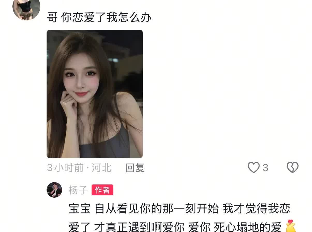 一位女网友留言「杨哥,我也喜欢这样的装扮,跟你般配吗?」 杨子回复:“我喜欢你
