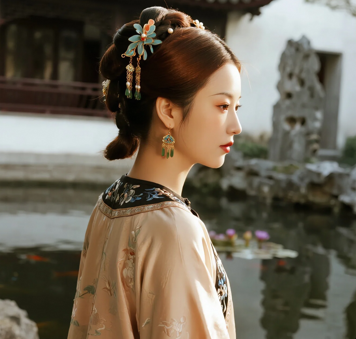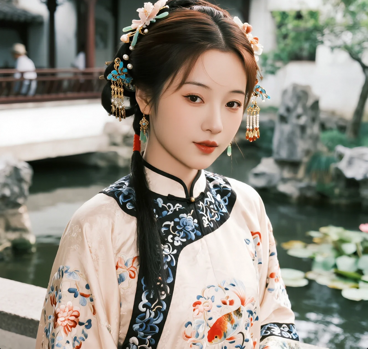 苔花如米小,也学牡丹开:汉服小姐姐的园林微景致