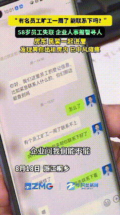 不幸中的万幸!浙江桐乡,一58岁男子连续几天没去上班,企业人事察觉不对报警。等民