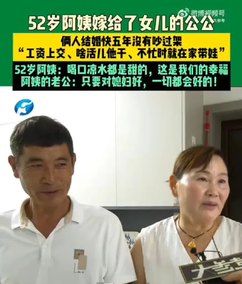 真是肥水不流外人田!公公变继父,亲母女两嫁给了亲父子,别样婚姻引热议! 2025年8月21日,河南周口一女子结婚三年后把自己的亲妈智女士介绍给了自己的公公马先生,二人喜结连理,亲母女嫁给了亲父子,这一视频瞬间火爆全网。 据了解,智女士在女儿1岁多时就离婚了,马先生在儿子5个月时丧偶,二人多年来都未婚,独自一人把孩子拉扯大。 女儿莎莎结婚三年后,也就是2021年发现母亲与公公二人相处非常融洽,于是与丈夫合计之后,便给二人牵线搭桥,真正做到了“亲上加亲”,起初二人顾及外边的流言蜚语并不同意,最终接受了儿女的建议。 视频中智女士一脸幸福,她称二人结婚5年了从来没有吵过架,马先生不仅主动上交工资,而且还主动做家务,带孩子,这样的幸福生活智女士称“喝口凉水都是甜的”,马先生也笑着说“只要对媳妇好,一切都会好”! 在视频中,能看出他们一家人相处的其乐融融,网友也纷纷送上祝福,称“幸福与身份无关,日子是自己的,想怎么过怎么过!”更有网友称“没有了婆媳矛盾,心往一处想,劲往一处使,这个家只会越来越好”!“真的是肥水不流外人田”。翻看评论区后发现,有很多人分享了这种“亲上加亲” 的事例,当然也有网友持反方观点,认为“爱情至上不能成为扰乱伦理的理由”!对此你怎么看?