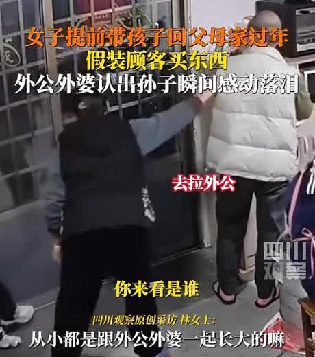 广西柳州,女子带着自己一家三口准备回父母家过年,为了给家里人一个惊喜,让儿子假装顾客到店里买东西。 眼看就要过年了,广西柳州的一户人家准备回老家。有位妈妈想给爸妈一个大惊喜,就让半年没见面的儿子假装成“买东西的”,先溜进店里瞧瞧。 这家店是老两口开了好多年的,平时人来人往特别热闹,可那天却安静得出奇。小男孩自己走进店里,假装挑东西,一边问价格一边付钱,想瞒着外公外婆。外公外婆在柜台后面,一边回答他,一边偷偷打量着这个孩子,觉得他既熟悉又陌生。他们心里犯嘀咕,但就是没叫出外孙的名字。 等到小男孩坐下来,轻轻地叫了声“奶奶、外婆”,屋里的空气都好像停了。外婆愣了一下,摘下眼镜擦了擦眼睛,又看了好几遍,这才敢相信自己看到的是真的。她声音都抖了,赶紧把外公也叫过来,两个人围着孩子转了好几圈,嘴里不停地说:“咋长这么高啦?变化咋这么大呢?”那一瞬间,时间好像回到了过去。以前总爱在爷爷奶奶面前捣蛋的小屁孩,现在已经长成了小伙子。大半年没见,两位老人差点没认出来。可当外婆张开双手,一把抱住外孙的时候,眼泪就哗哗地流了下来。 那一刻,心里头的想念、担心还有盼望,全都变成了真真切切的感情。老人又笑又哭,我们也终于懂了,过年能回家,真的是最让人心里暖和的事儿。