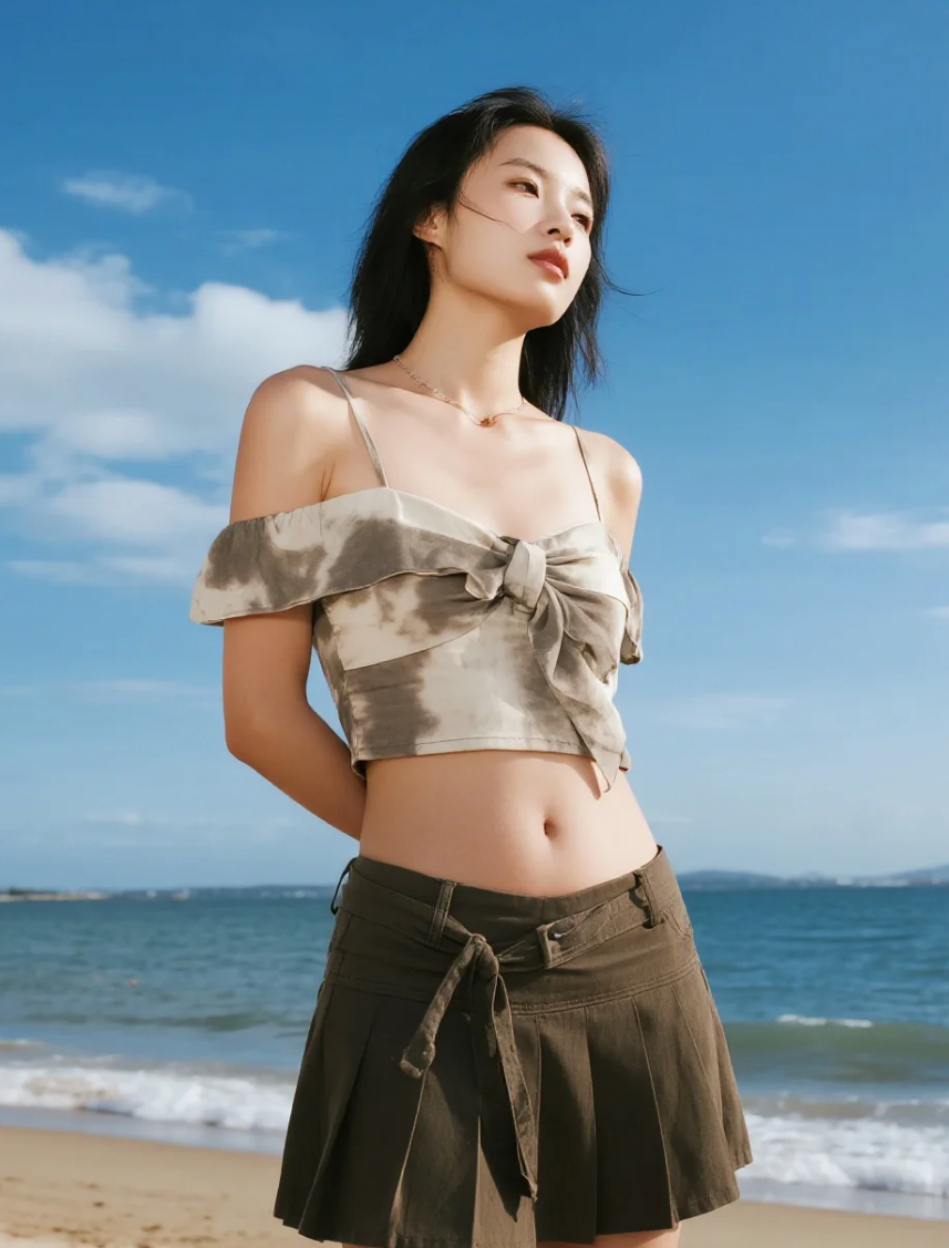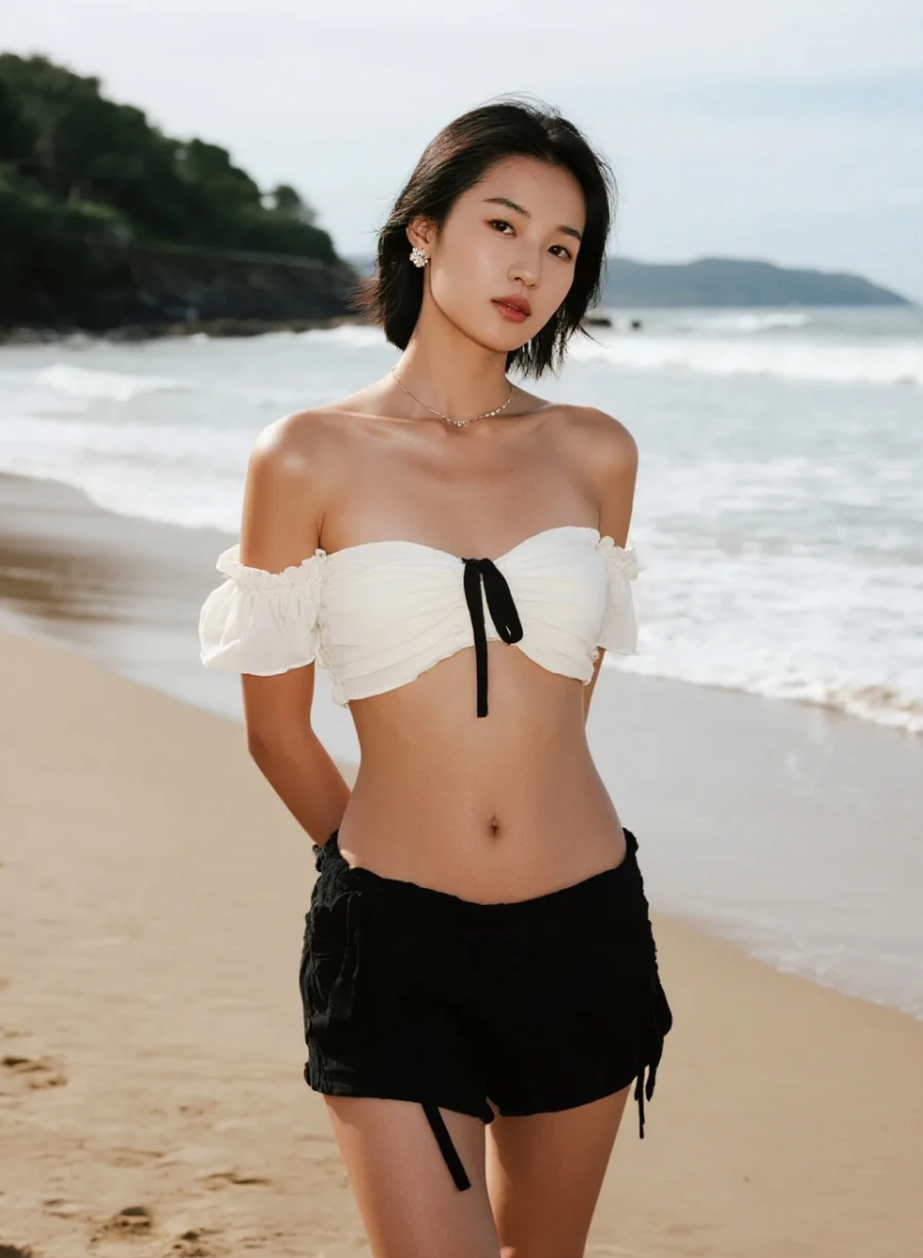 海风撩起发丝,她站在沙滩上美得像幅画!