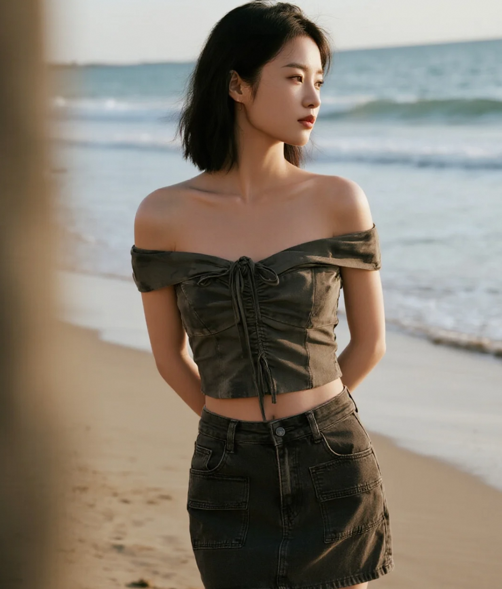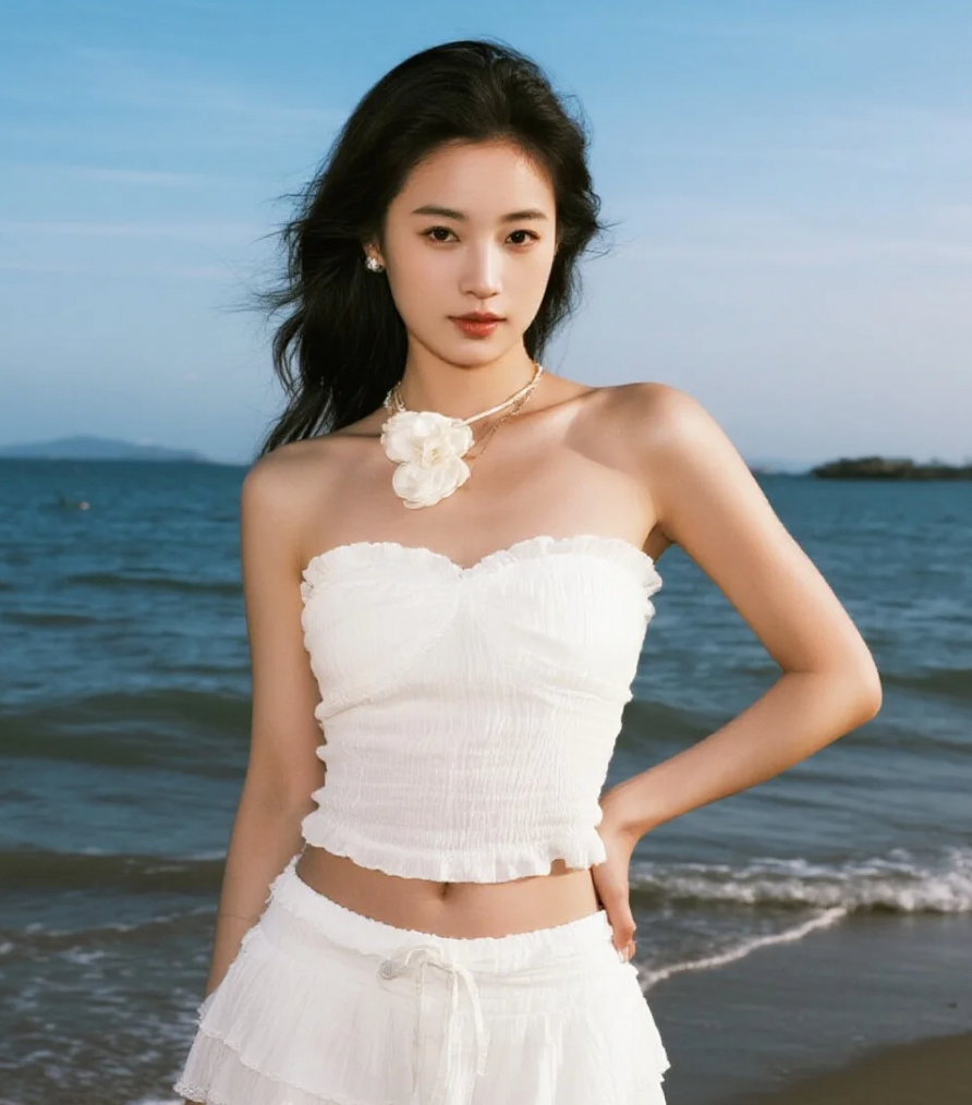 海风撩起发丝,她站在沙滩上美得像幅画!