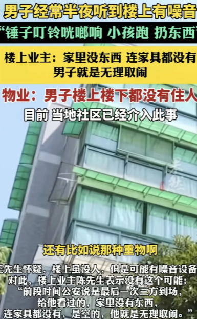 期间男子也报过警,但警察、物业、房东到场查看情况后,发现这6楼家中连家具都没有,全是空的,更没有什么噪音器了。