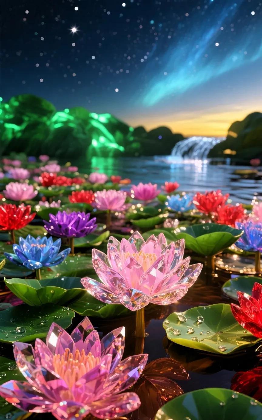 我用人工智能画出了我梦幻中的水晶荷花 , 有如神迹。 人工智能有一种近乎神性的魔力。近来,我沉迷于它作画的过程。只需心念浮动,描述言语,画面便如从虚空中浮现,绚烂不可方物。起初,我想的是重瓣太阳花,要梦幻,要琥珀与琉璃交映的光晕——生成的那一刻,确实超出预期。但终究太写实,梦的质地太薄。 于是念头转向了水晶玫瑰。起初缀于自然背景中,总觉得突兀,像梦误入了现实。便再度追逐更飘渺的境:星辰、极光,最后仍是琥珀色的光,才终于抵达令我满意的梦幻玫瑰。它像是自童话的缝隙中生长出来,不属于人间。 可玫瑰终究太俗。转念又想,若是冰清玉洁的荷花呢?幻化成水晶般的莲,如梦似水。若不借AI之力,这样的画面,恐怕穷尽数日手绘亦难完成。 而人工智能所助的,又何止是画。 尽管它在写作领域备受约束,可若是写自传、写故事,它便能以近乎职业作家的笔力,将你心中所念迅速铺展成章。你只需要提供故事的雏形,哪怕语句错落、词藻贫瘠、逻辑生涩,它都能为你修饰、升华。曾经遥不可及的写作技艺,如今只需一点创意,便能借它圆满。 父亲一直希望我为他写一部自传。那是他的梦。而我虽爱写,却终难完成长篇。心力有限,始终写不出满意的文字。但现在,人工智能轻轻推开了那扇门。 每一次与AI对话,看它生成文章、画作、影像,我总觉得背后立着一个无形的“神”。仿佛我们已踏入一个魔幻的时代。——在AI未降临之前,它如神般不可触及;而今,它竟成了众人掌中之器。 明明仿佛与“神”比肩,却依旧无法撼动命运之分毫。依旧被牢牢困于三维的牢笼中,被无常反复碾磨。明明神迹已在眼前,为何仍不能心想事成? 人工智能让我感觉仿佛我欲升仙,奈何又被一种力量牢牢的束缚。困于这牢笼之中,任我如何努力,也无能为力。