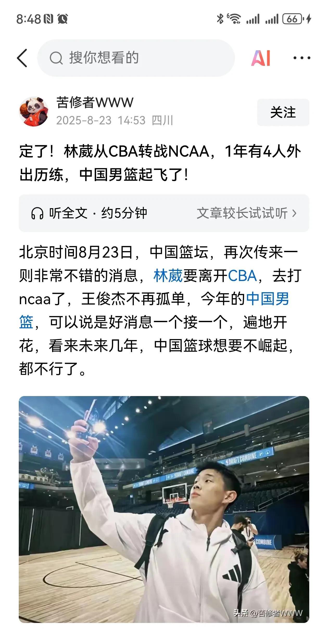 旅美球员最新消息! 1.王俊杰明年将参加nba选秀! 2.林葳将参加ncaa大