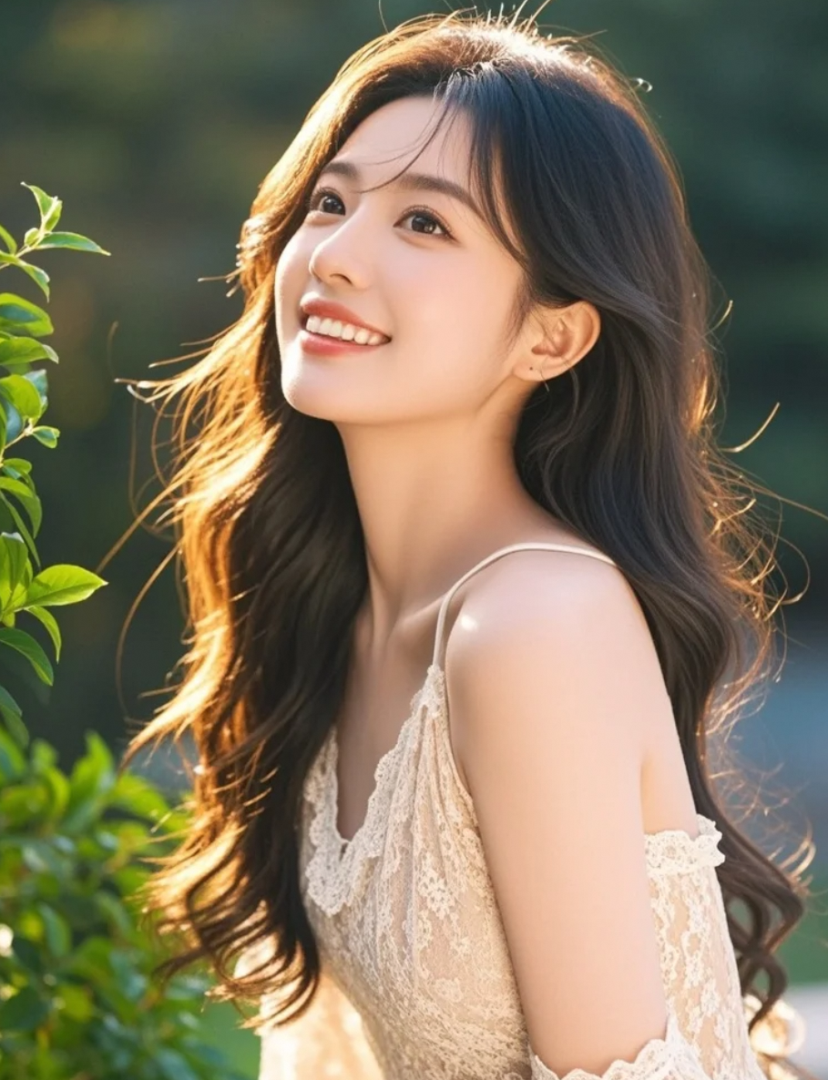 阳光亲吻她的发梢,每一根都闪烁着金色的光