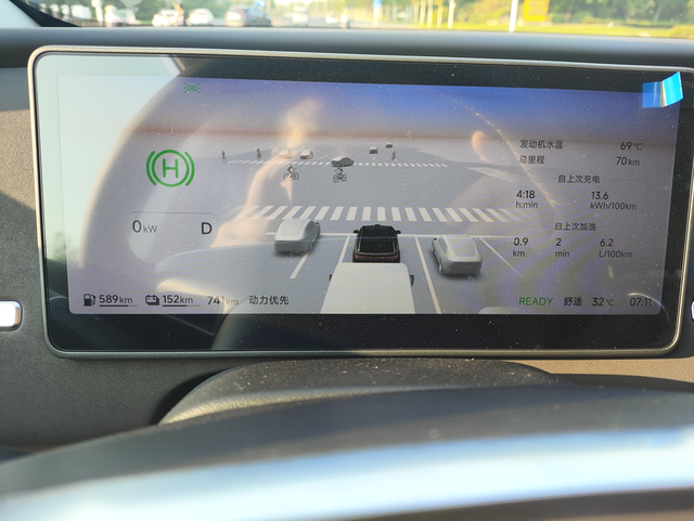 新车刚提第二天跑高速,80%电,2大人3小孩差不多540斤,没有行李。空调20度2挡风,没有开座椅通风。今天室外温度38度左右。基本上都是110~120速度,表显7个油,新车没有油,加了200元,6.3元一升,表显油589km,实测下来欢乐表,没有一点参考价值,去时下高速后有17公里,用的纯电跑。回来时油下的比较厉害还有80公里,提前下高速,又跑了70公里纯电。 有几点体会分享下 1:车机表显和实际速度有偏差。表显比实际速度快。具体没测。 2:燃油优先模式,120可以保住电,但也没有反充。 3:燃油优先,130时,发动机声音就很响了,电80%,嗡嗡的响。120速度基本都是胎噪和风噪,发动机声音听不到。 4:ACC和LCC开启时,刚开始能感觉细微的速度不平顺一跟一跟的,后面可能适应了,感觉不到了。和之前油车ACC的平顺不一样,这个不平顺。 5:满油满电,这车比插混高速里程要低不少。 6:官方给的里程数据,高速跑下来110~120时速,差不多只能跑一半。 7,纯电模式,下路60~70基本上和WLTC数据,差不多。