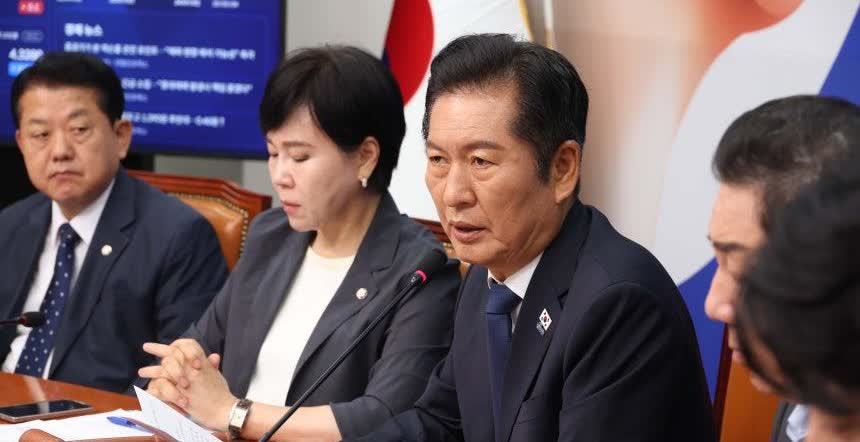 郑清来向国民力量党全党大会送花圈,却说:“这是叛乱政党,早该解散了。” 共同民主党代表郑清来22日在最高委员会议上,公开向国民力量党开炮,表示:“我认为可以让他们解散十次、一百次。” 其实,执政阵营中之前也有人提出过要解散国民力量党的声音。如今郑代表在正式场合也这么说,被解读为“根本没有与第一在野党对话的意思”。 与此同时,郑代表最近也因为“金冠照”引发争议。19日,他在国立庆州博物馆拍下了一张仿佛自己戴着新罗时期金冠的照片,并在20日上传到社交媒体。但因被批评“你是要当王吗”,隔天就删除了。 其实,早在上个月15日,郑代表就曾代表提出修改《宪法法院法》的修正案,内容是允许国会在通过本会议决议后,政府必须向宪法法院申请政党解散审判。现行制度下,政党解散审判的申请权仅属于政府,但修正案若通过,国会决议将迫使政府必须提起解散请求。目前国会是泛执政阵营的绝对多数。 另一方面,郑代表当天还向正在忠北清州奥斯科举行的国民力量党党代表全党大会现场,送去了以党代表名义署名的花圈。对此,民主党首席发言人朴洙贤回应称:“这是国民力量党的重要活动,按惯例朝野之间会互相送花圈,所以这次也照常送了。” 不过,政界有人讽刺称:“一边喊着要解散对方政党,一边还送花圈过去,这简直就是喜剧。”