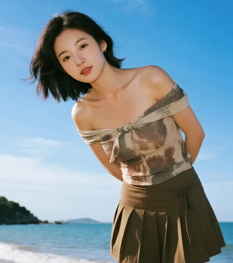白色连衣裙在海风中飞扬,仙气十足!
