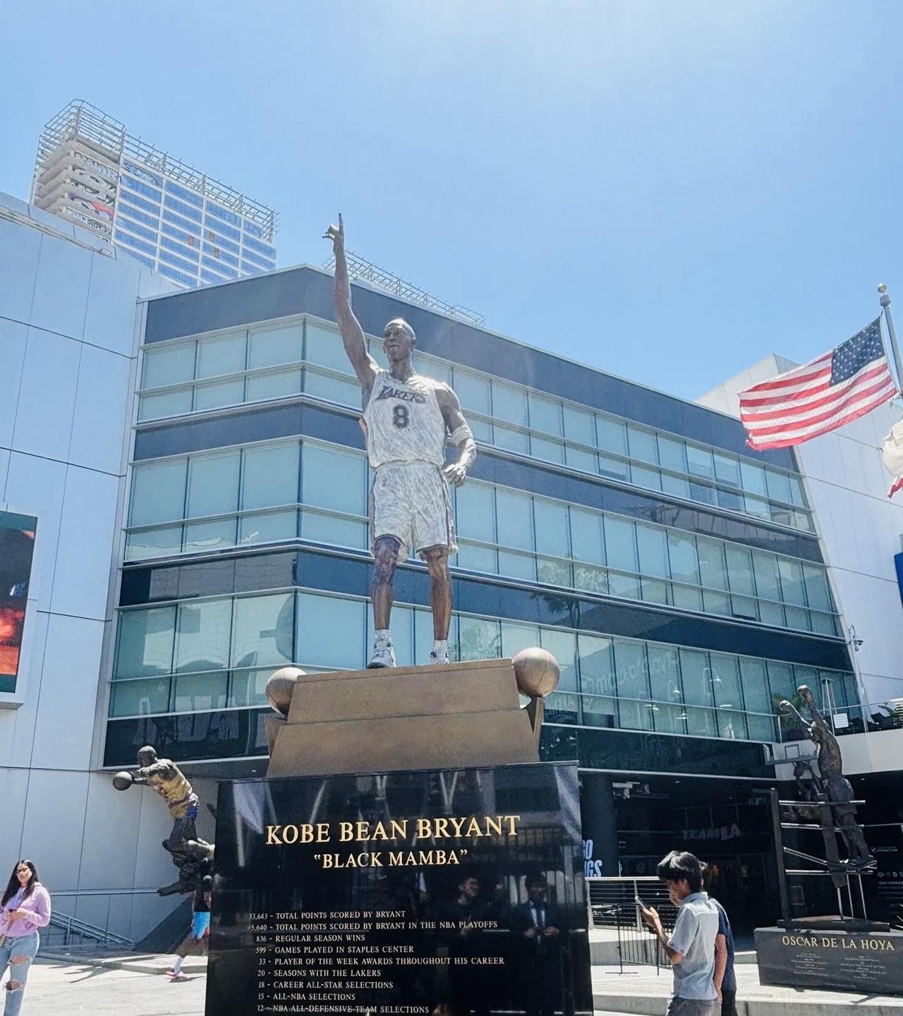 恍恍惚惚又一年,老头生日快乐! 五年咯,这五年湖人为了纪念你的贡献 为你树立了两座雕像, 一座81分后单手指天的霸气, 一座你和Gigi相拥而笑的温馨画面, 洛杉矶随处可见的致敬壁画, 即使在洛杉矶遭遇动乱时, 依旧没人敢破坏,保存完整, 家嫂的球衣也如愿挂在你旁边, 实现了你生前的愿望, 科嫂为你和Gigi修建了多座篮球场, 继续做着你生前未完成的慈善事业, 你的大女儿顺利完成了大学学业, 成为了一名优秀的模特, 那个你的超级忠实球迷尼克尔森也进入了篮球名人堂中的超级球迷画廊之中, 欧文还是在比赛和生活致敬与你, 跟随你的脚步开办训练营,传递曼巴精神, 对了还有一件事,当年和你合影的斯洛文尼亚小胖子如今也加入了你的球队,成为了球队新的门面,追逐着为湖人拿下一座又一座总冠军!