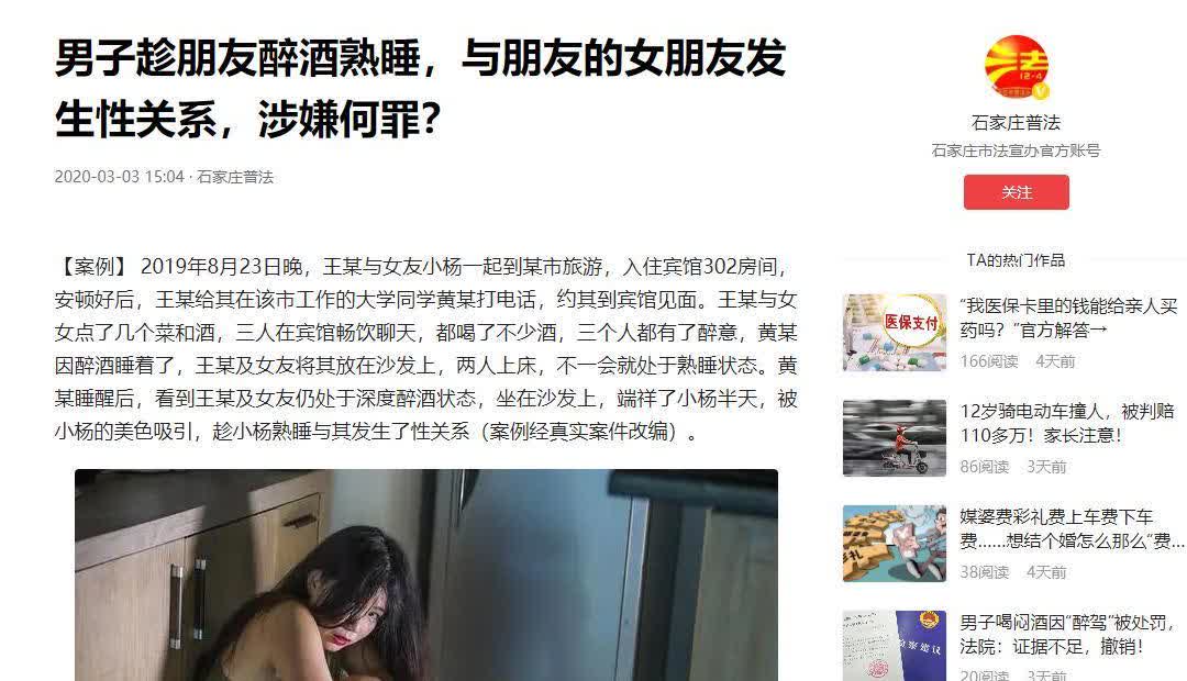 趁女友酒醉,男子竟同意朋友“共享”女友?2020年,辽宁沈阳,男子为了满足好兄弟的愿望,趁着女友醉酒之际,让好兄弟和女友激情一次,女友当时喝醉实在无力挣扎,事后女友还遭到男友的语言侮辱。女子一气之下选择报警,结果却让人意想不到。 2020年,在辽宁沈阳,有那么一对大学生情侣,男的叫杨文旭,女的叫夏雨。这俩人感情好得跟一个人似的,整天腻歪在一起。有一天,杨文旭的铁哥们儿张浩心血来潮,说要一起吃个饭。三人一拍即合,就奔学校边上的烧烤店去了。 吃着吃着,张浩那眼睛就开始往夏雨那儿瞟,杨文旭也不是没看出来,但他非但没拦着,还一个劲儿地劝夏雨喝酒,结果夏雨直接喝断片了。这时候,杨文旭就把夏雨扶到旁边酒店去了,张浩呢,也跟着溜进去了。夏雨那时候迷迷糊糊的,一点反抗的力气都没有,张浩这家伙,竟然就当着杨文旭的面,对夏雨干了那种事儿。杨文旭呢,就在旁边看着,啥也没干,事后还对夏雨说些难听话。 夏雨醒过来以后,感觉不对劲儿,一看自己身体那样儿,立马就报警了。结果呢,张浩因为强奸罪被判了十年以上,杨文旭因为是帮凶,也跟着倒霉了。这事儿真是让人大跌眼镜,你说这杨文旭,为了哥们儿义气,连自己女朋友都能卖,这道德底线简直是掉了一地。爱情本该是干干净净、忠贞不渝的,友情也得有个度啊,一过界,那可就是万丈深渊了。