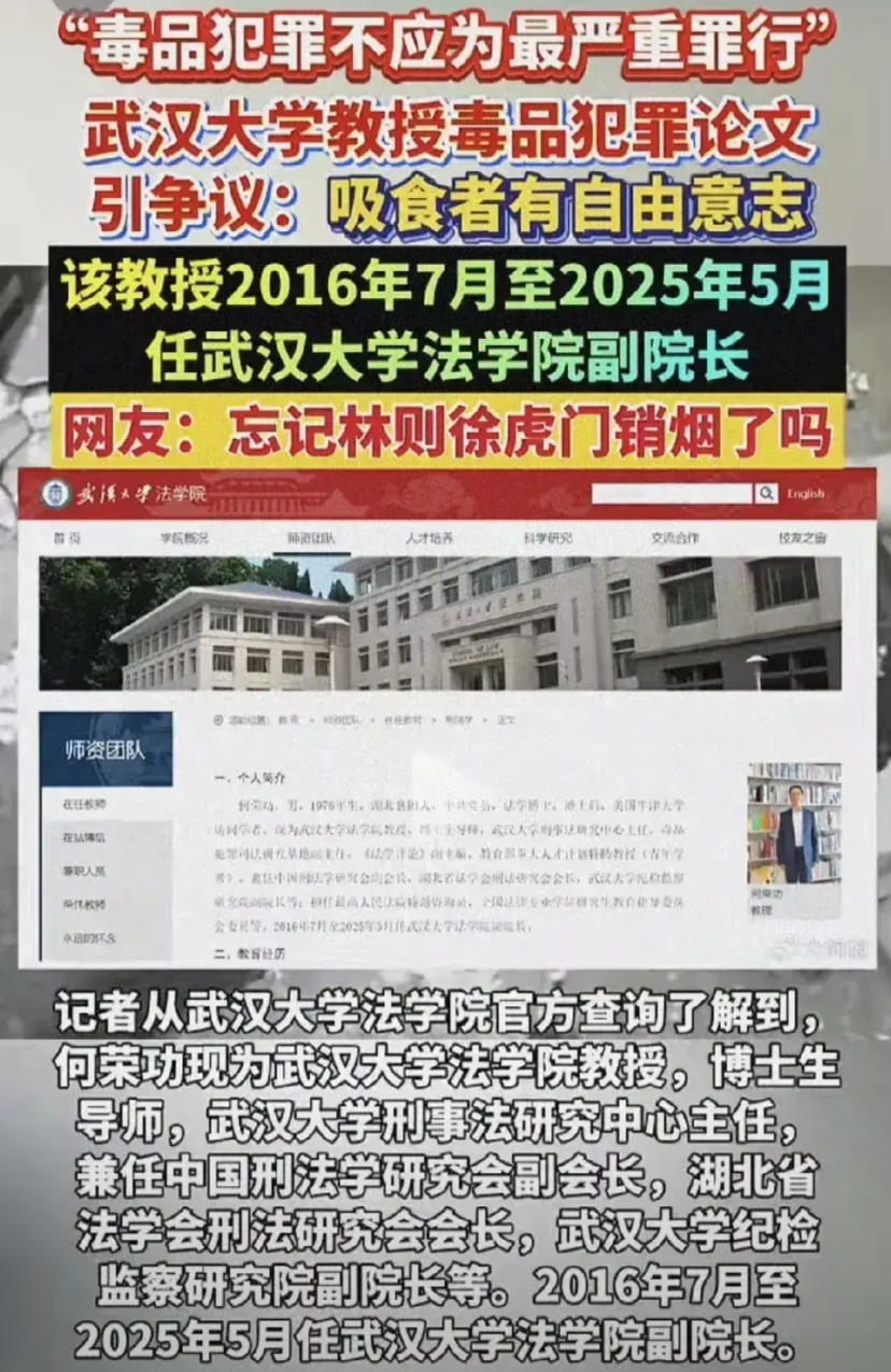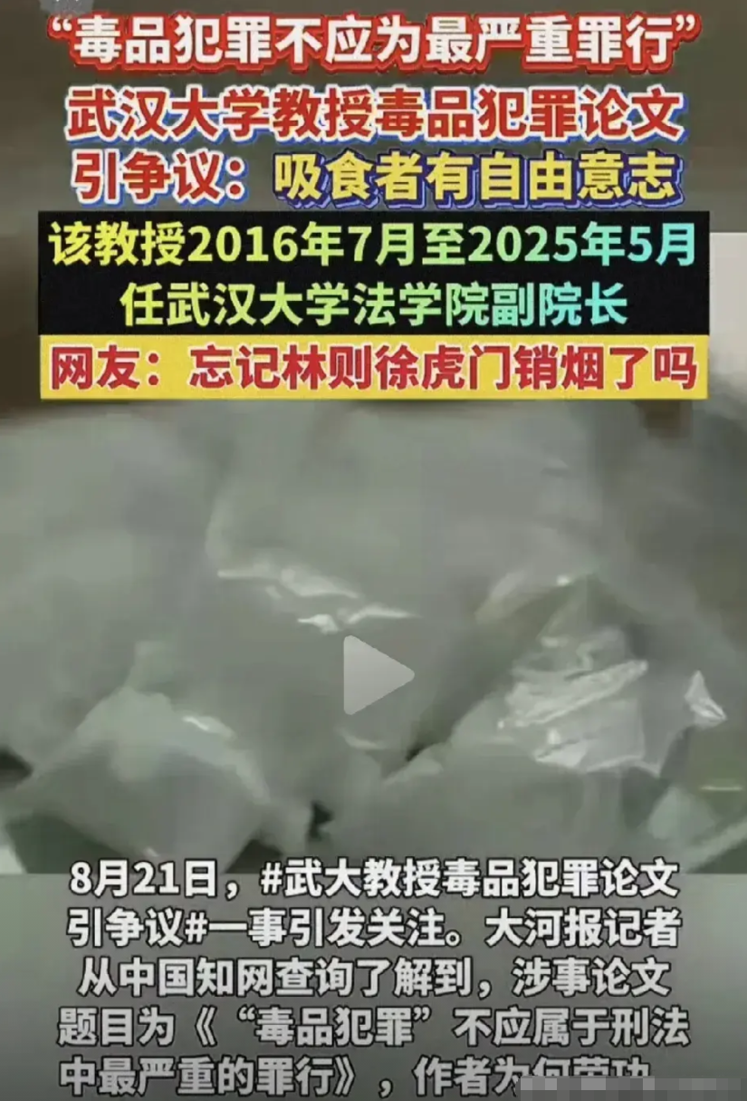 看到这位曾任武大法学院副院长的教授关于毒品犯罪论文中的描述,非常震惊!根据《大河报》报道,这位教授写了一篇论文,论文中他认为毒品吸食者有自由意志,毒品犯罪不应为中国刑法中最严重罪行。