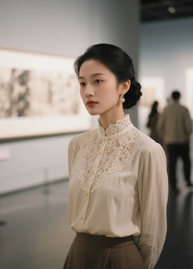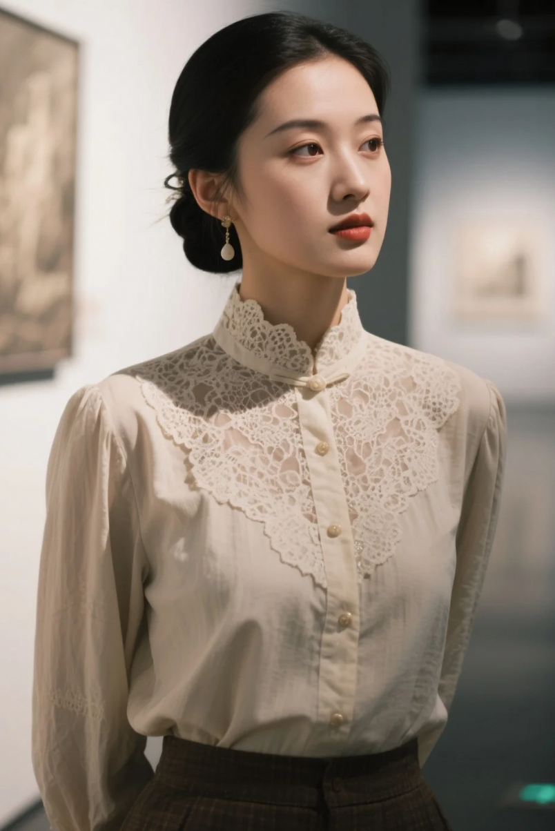 蕾丝领一衬,发髻一挽,她本身就是一幅行走的艺术品