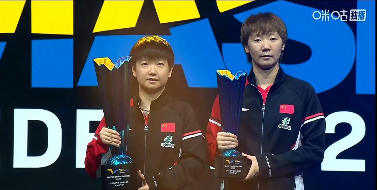 孙颖莎、王曼昱昨天一起捧起女双冠军的奖杯,今天一个捧起女单冠军奖杯,一个捧起女单