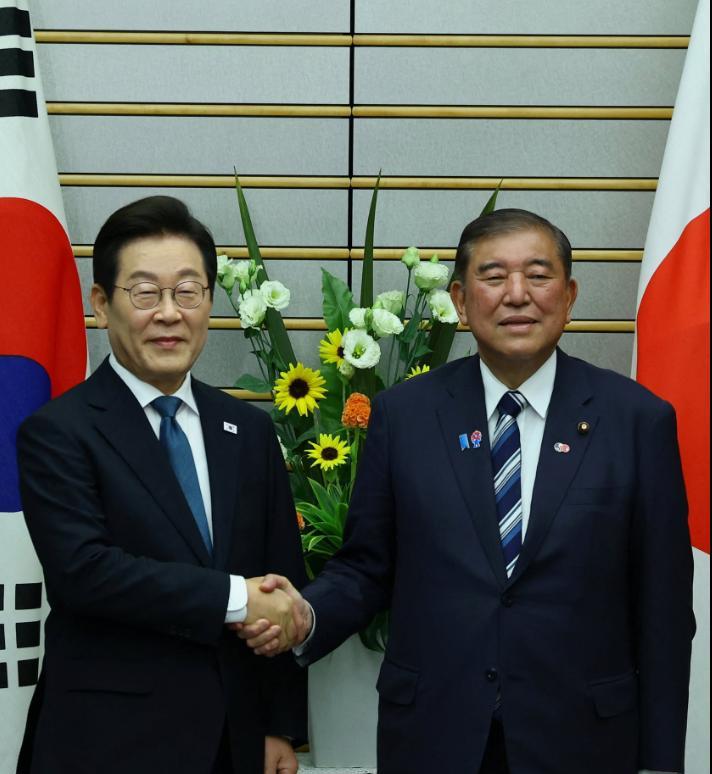 韩国李在明抵达东京,和日本首相石破茂举行会谈。会后发表联合新闻公报。强调互惠合作。 时间是8月23日晚上。 地点:东京日本首相官邸。
