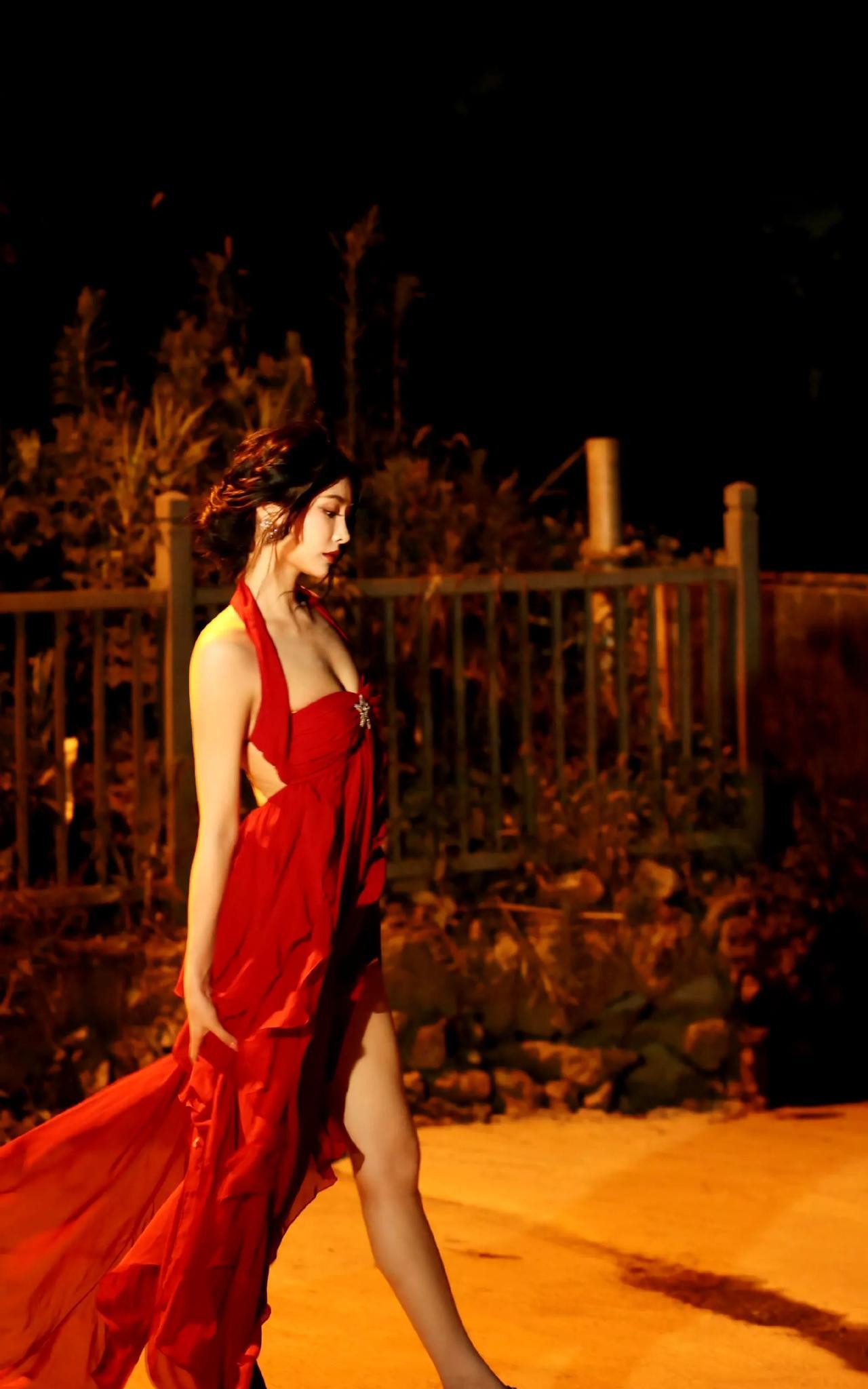许佳琪一袭红裙美炸!皮肤嫩得能掐出水,眼神勾人,走路带风裙摆飞,露背高开叉秀长腿