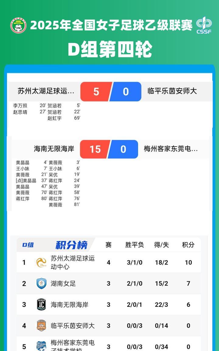 2025#女乙联赛小组赛A、D组第四轮战报及积分榜