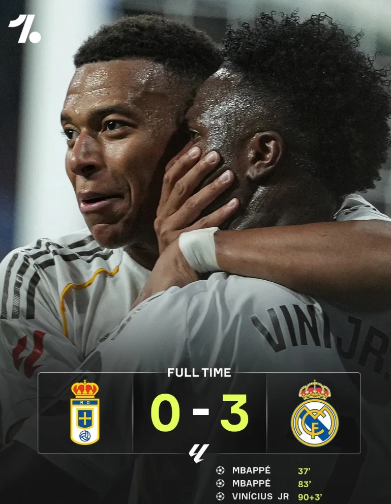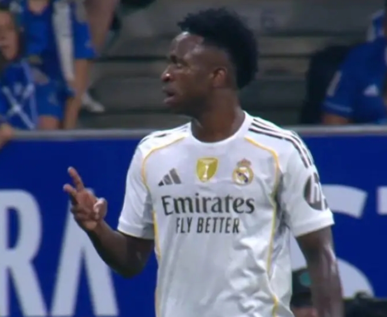 西甲第二轮皇马做客对战奥维耶多,姆巴佩梅开二度,维尼修斯替补登场打进久违的客场进球(上次客场进球还是24年10月19日对阵塞尔塔)。 本场比赛过程中维尼休斯因不满裁判破口大骂被姆巴佩捂住嘴巴,姆总的表情有点搞笑,赛后又对着奥维耶多的球迷示意:降到西乙去吧。 球迷认为他脾气不好,容易把自己卷到不必要的争论中,他真的要努力控制住自己的脾气。