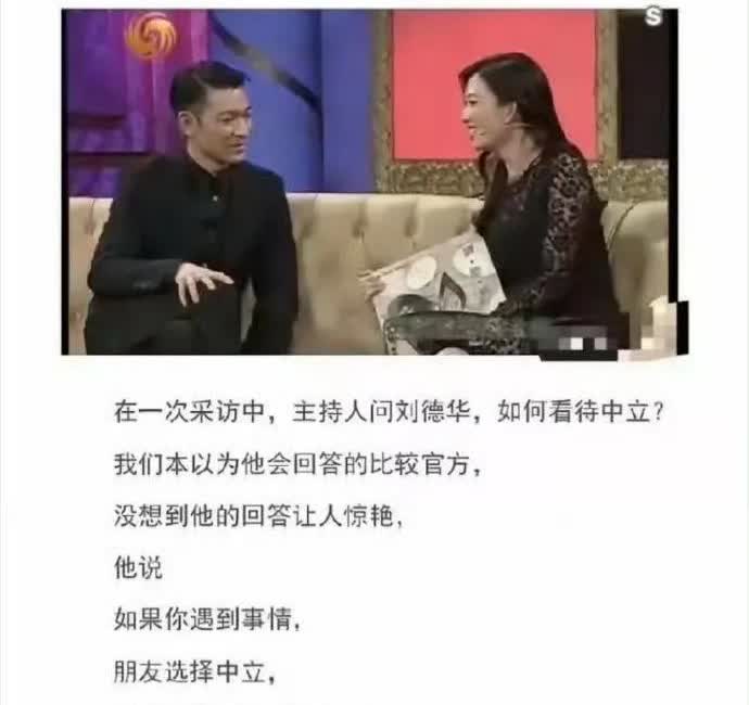 刘德华很少有这么鲜明的言论:朋友选择中立,就是站在了你的对立面,敌人选择中立,就是在帮你